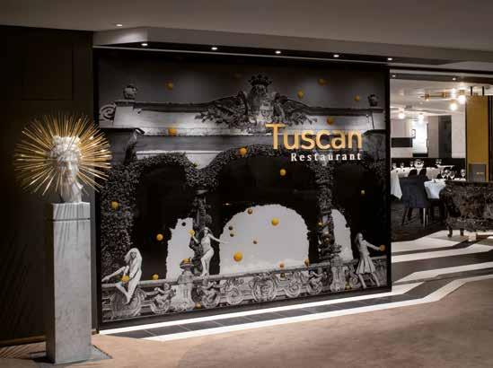Interna scope of work included the fit-out of about 1.400 square metres for the Tuscan restaurant, with a classical design inspired by the Italian fashion and film industry and the Normandie restaurant, a modern, glamorous space that brings to mind the atmosphere of a spring day in Paris.