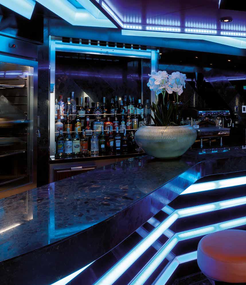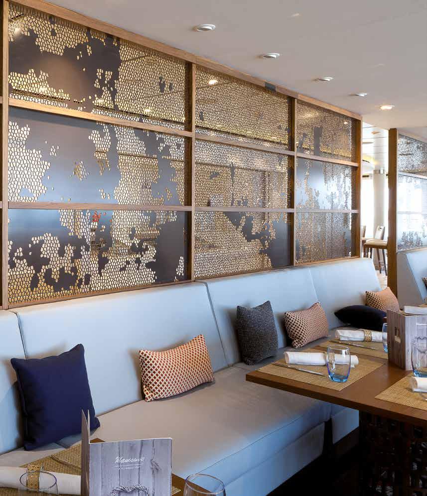 From floor to ceiling Interna produced and installed all the fixed elements in compliance with the detailed design specifications, the rather strict naval rules regarding weight and fireproofing and respecting the high quality standards required to meet the demands for frequent use materials in public premises.