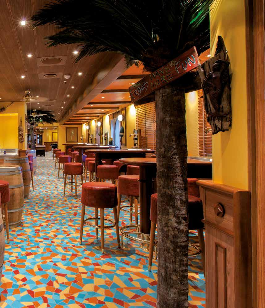 The agreement between Interna and Fincantieri envisaged the turnkey implementation of the Upper Promenade, Photo Gallery, Ocean Plaza, Shake Bar, Taste Bar, Fun Hub Café & Green Room, Red Frog Pub, Annex & Terrace, whose design was created by the German studio Partner Ship Design. Interna supplied floors, walls, ceilings and all the fixed and loose furnishings, as well as executive design services, installation and final testing.