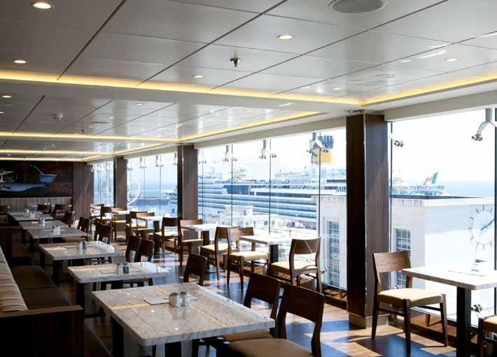 For these queens of the sea, Interna France supplied, upon exclusive concept of Tillberg Design, a complete turnkey with full fit out - planning, assembly and final check - of floors, walls, ceilings and all the furniture for the Cafeteria, 4.000 square metres open 20 hours per day with floor to ceiling windows overlooking the sea and open style kitchens. As the first two vessels of four, the Meraviglia and the Bellissima are the first of their class and the biggest of the whole fleet.