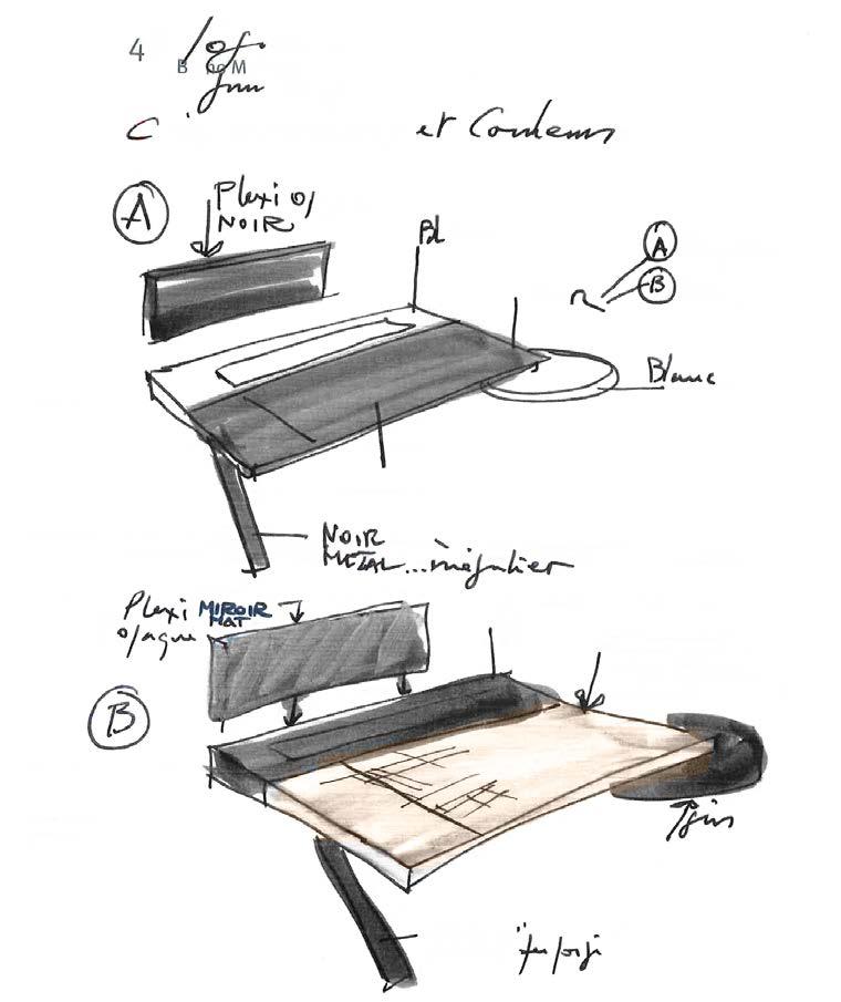 It has been favoured, essentially, a design with strong and sharp lines, creating a white-black, cord-black duality. No affectation in the desks to divert attention, except for an extendable top to relax the arm and a small rotating shelf because "even the stomach needs matters".