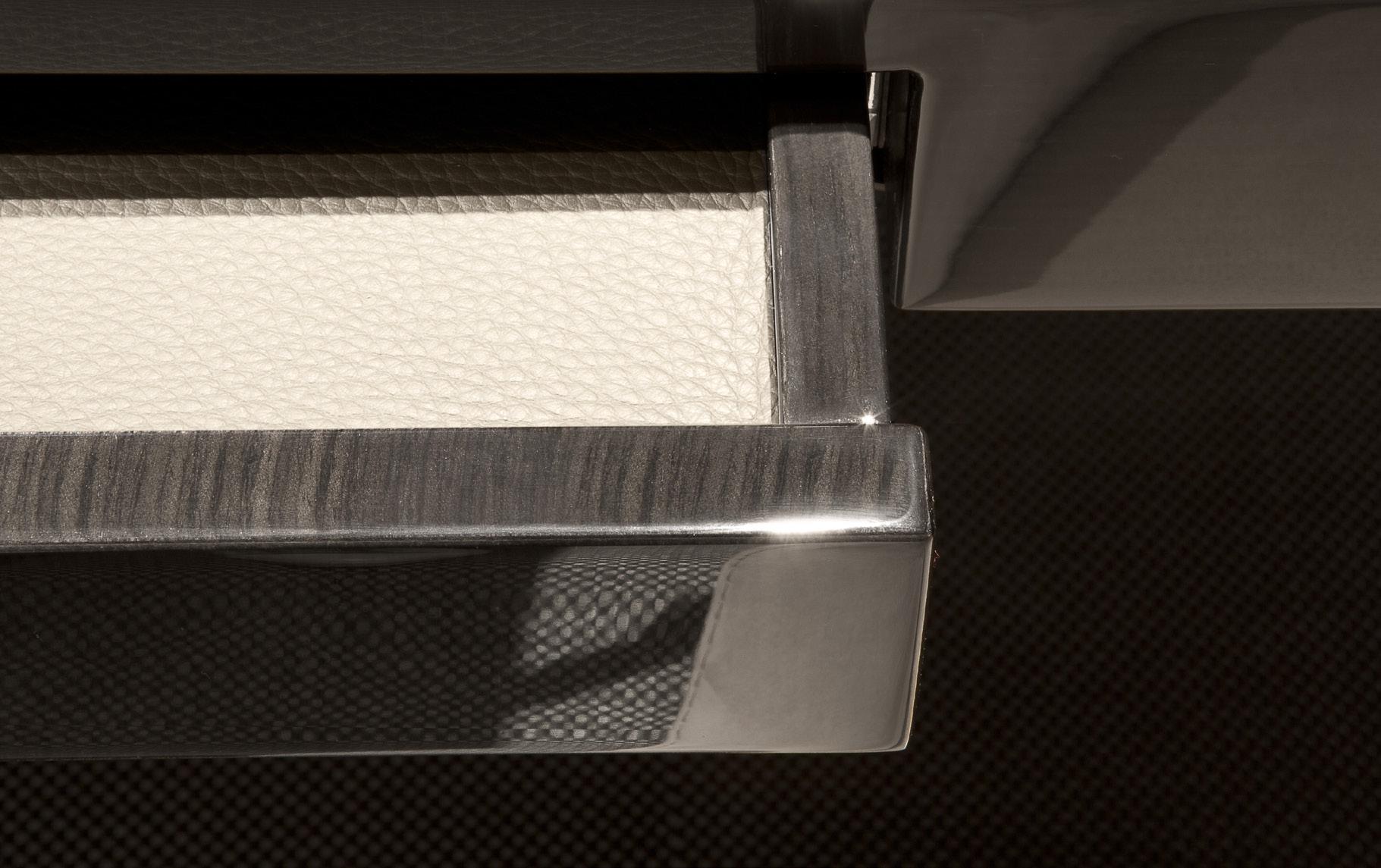 Marked by a sophisticated contemporary style expressed in pure lines, through an elegance that refuses any form of ostentation, the collection pays great attention to the harmony of proportions, to the chromatic unity, to an unusual mix of materials, to the high quality of manufacture and to even the most hidden detail. The result is a discreet luxury, a simple richness: the charm of the essential is just a first impression that conceals the great attention to details shortly after discovered.