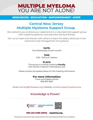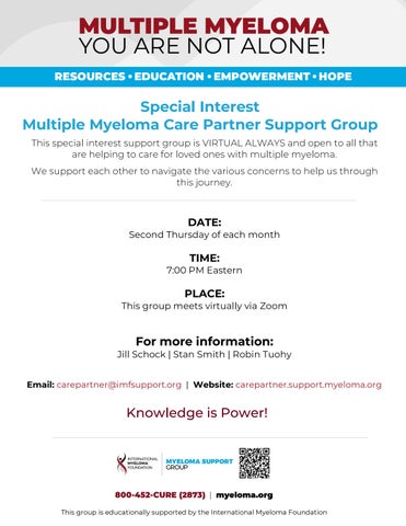 Founded in 1990, the International Myeloma Foundation (IMF) is the first and largest organization focusing specifically on multiple myeloma. The IMF’s reach extends to more than 525,000 members in 140 countries worldwide. The IMF is dedicated to improving the quality of life of myeloma patients while working toward prevention and a cure through our four founding principles: Research, Education, Support, and Advocacy.