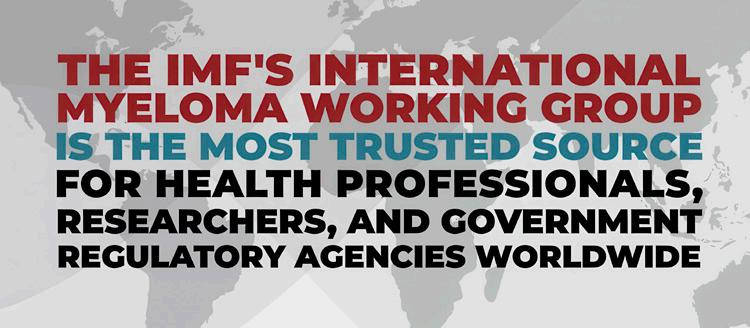 The International Myeloma Working Group (IMWG) is comprised of more than 300 global experts in myeloma research and clinical care. Members of the IMWG conduct collaborative basic, clinical, and translational research to improve outcomes for myeloma patients while providing scientifically validated, critically appraised consensus guidelines that are followed around the world. The work of the IMWG has greatly advanced the understanding of myeloma and its treatments, advancing patient care and outcomes.