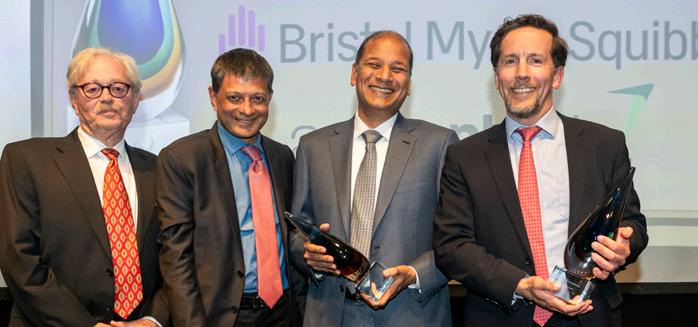 (Myeloma Patient & Advocate) to Dr. Samit Hirawat (BMS Executive VP, Chief Medical Officer, Drug Development) and Chip Baird (2seventy bio CEO), who received the awards on behalf of their organizations.