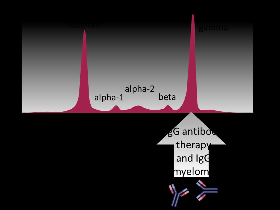 marrow Normal Myeloma Albumin alpha-1 alpha-2 beta gamma Myeloma