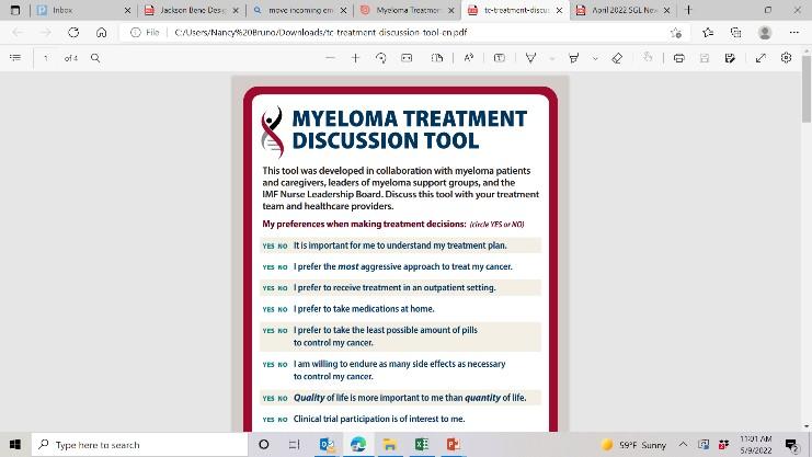 6 Contact the InfoLine: 800-452-CURE (2873) InfoLine@myeloma.org
