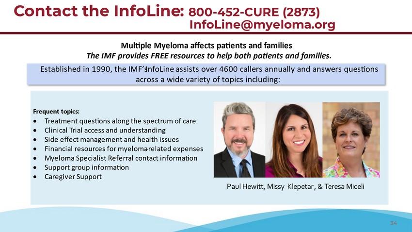 Multiple Myeloma affects patients and families. The IMF provides FREE resources to help both patients and families.
