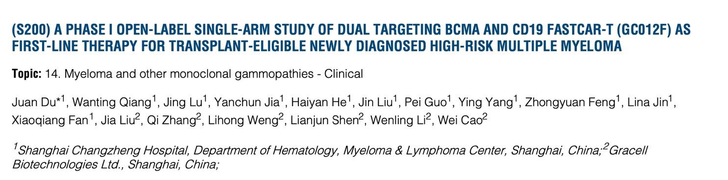 Ø FRONTLINE GCO12F .. FasT CAR T : Newly diagnosed high risk patients