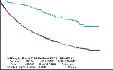• Consistent high individual-patient-level correlations provide strong evidence that 9 months MRDneg-CR rate at 10-5 threshold reasonably likely predicts clinical benefit of PFS in NDTE, NDTinE and RR MM populations