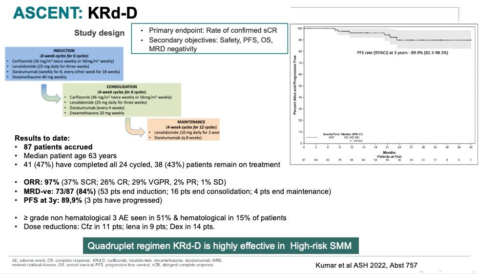 Ø 47/83 able to discontinue maintenance Ø 40 MRD negative at 10-7: 3-year PFS was 85%