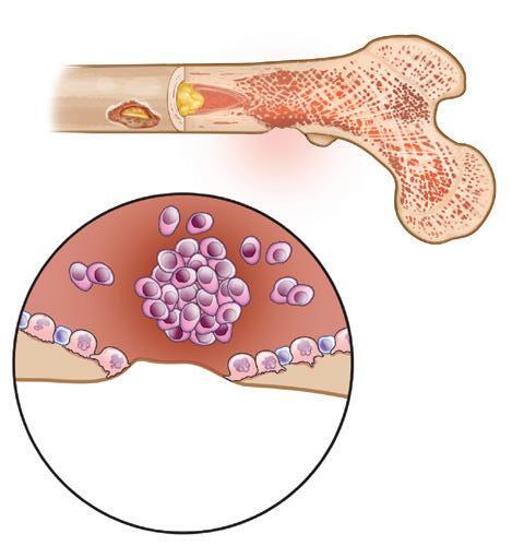marrow within the bones of the spine, skull, pelvis, rib cage, shoulders, and hips. The presence of myeloma cells within the bone marrow can also lead to other medical problems.