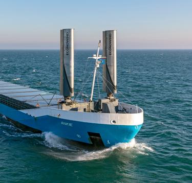 Since 2014, Norsepower Rotor Sails™ harness the wind to reduce fuel consumption and emissions by 5–25%, even 70% in ideal conditions. norsepower.com