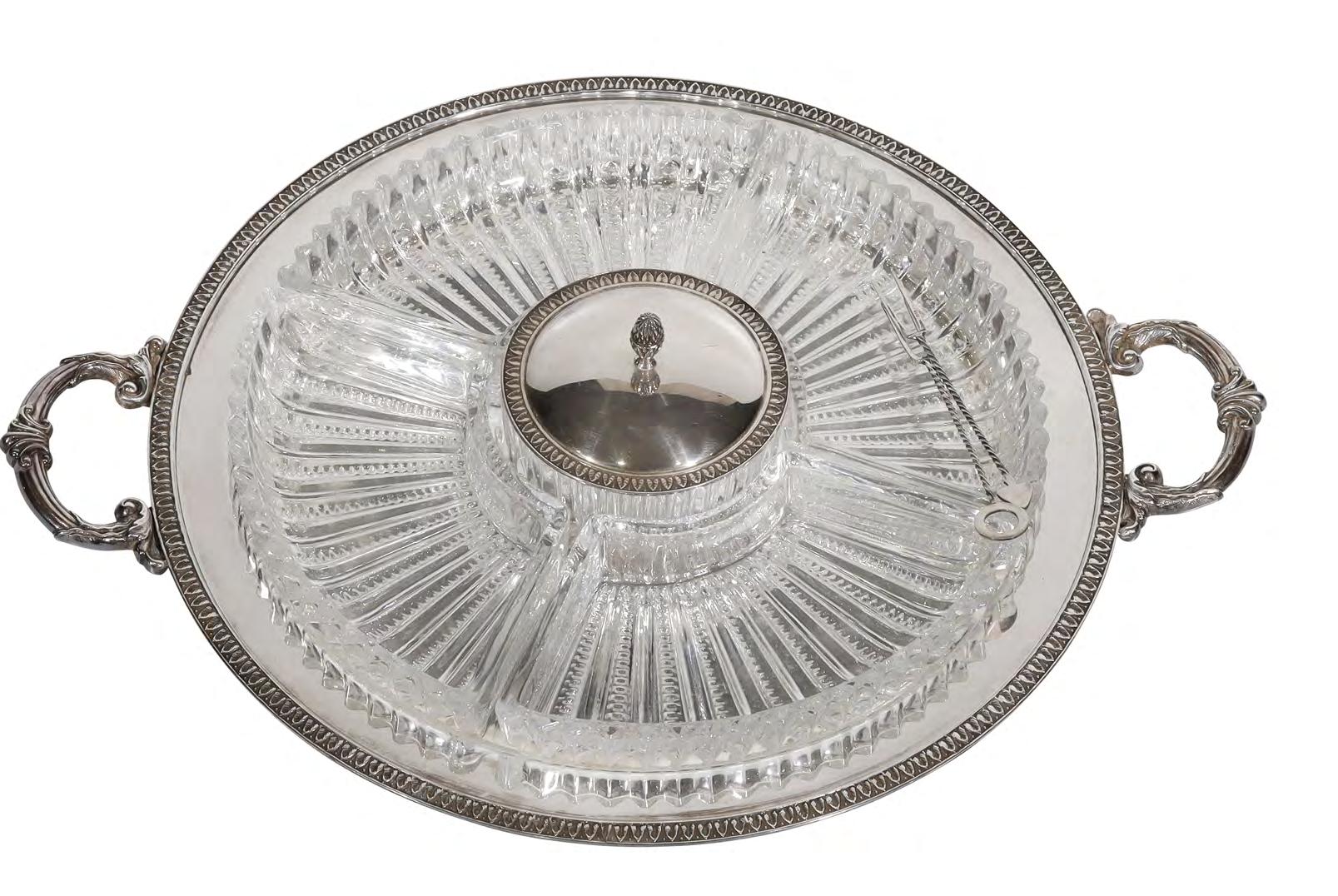 800 SILVER AND GLASS HORS D’OEUVRES SET