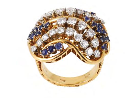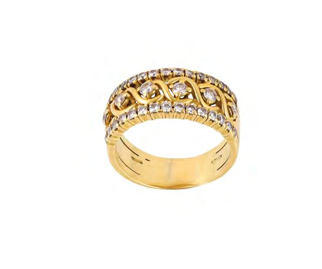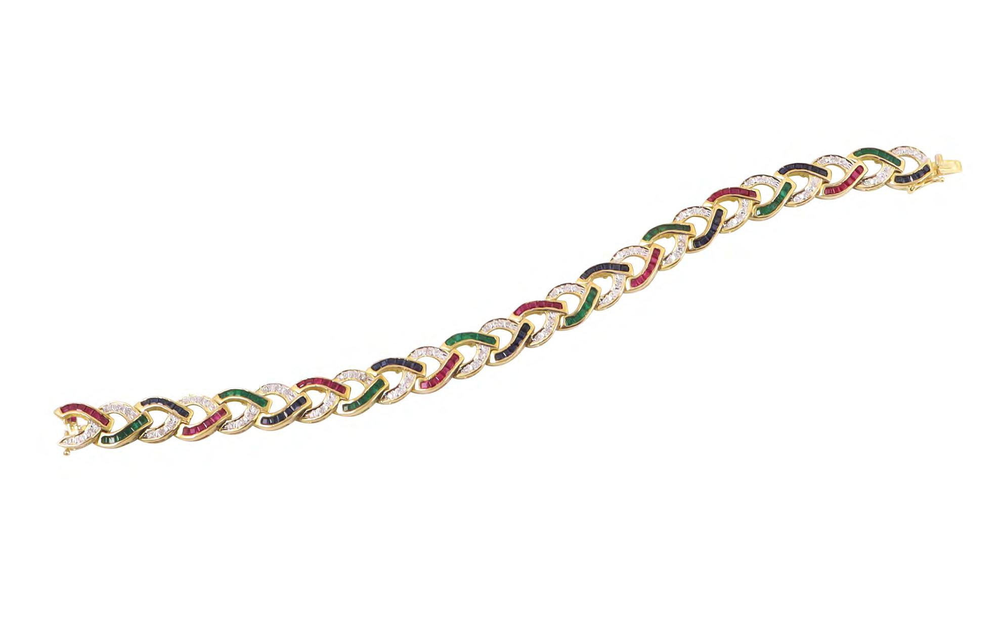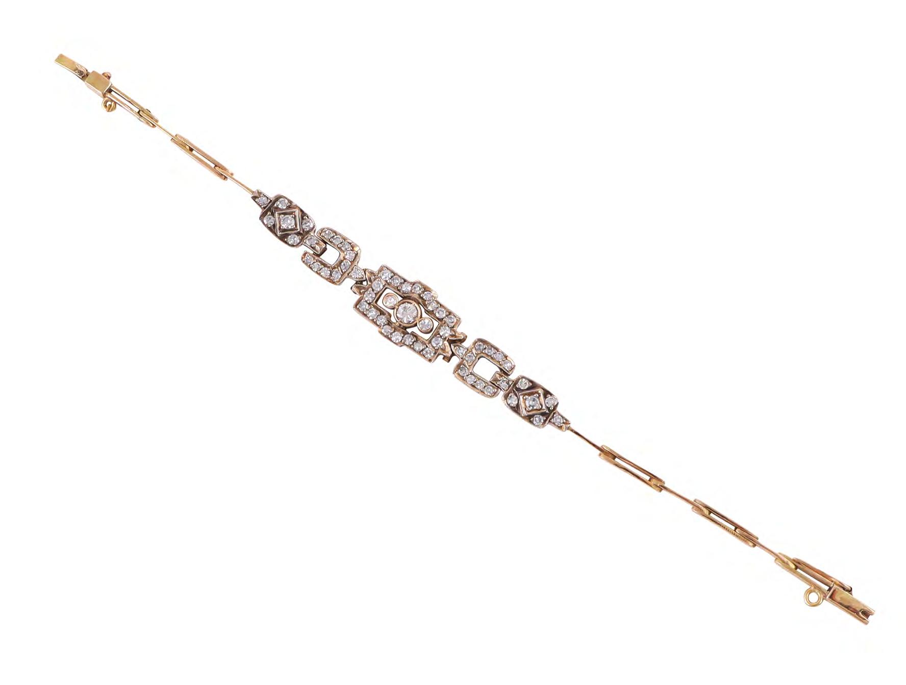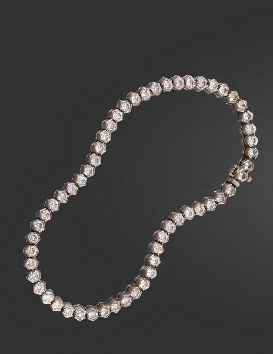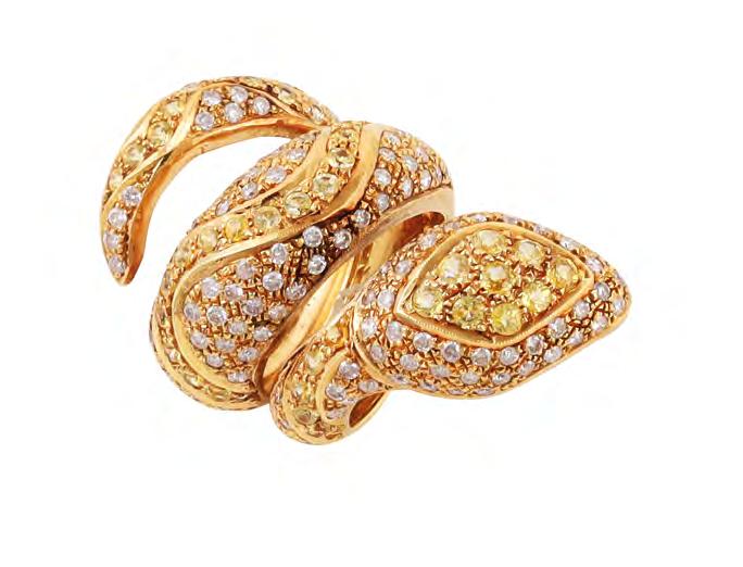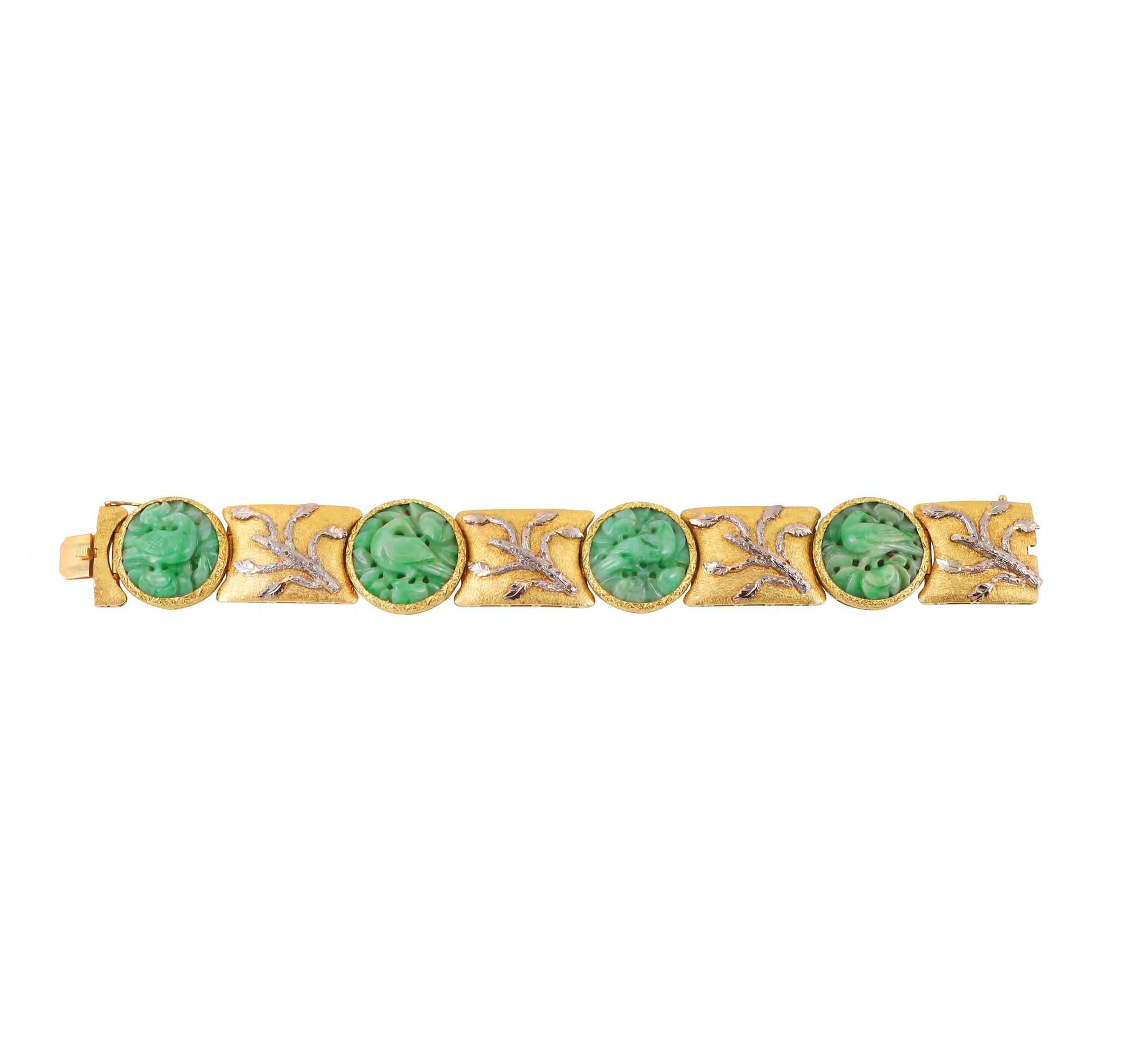 in oro giallo e bianco composto da sei motivi fogliati finemente cesellati con brillanti del peso complessivo di 1,50 ct ca., gr. 65,1.