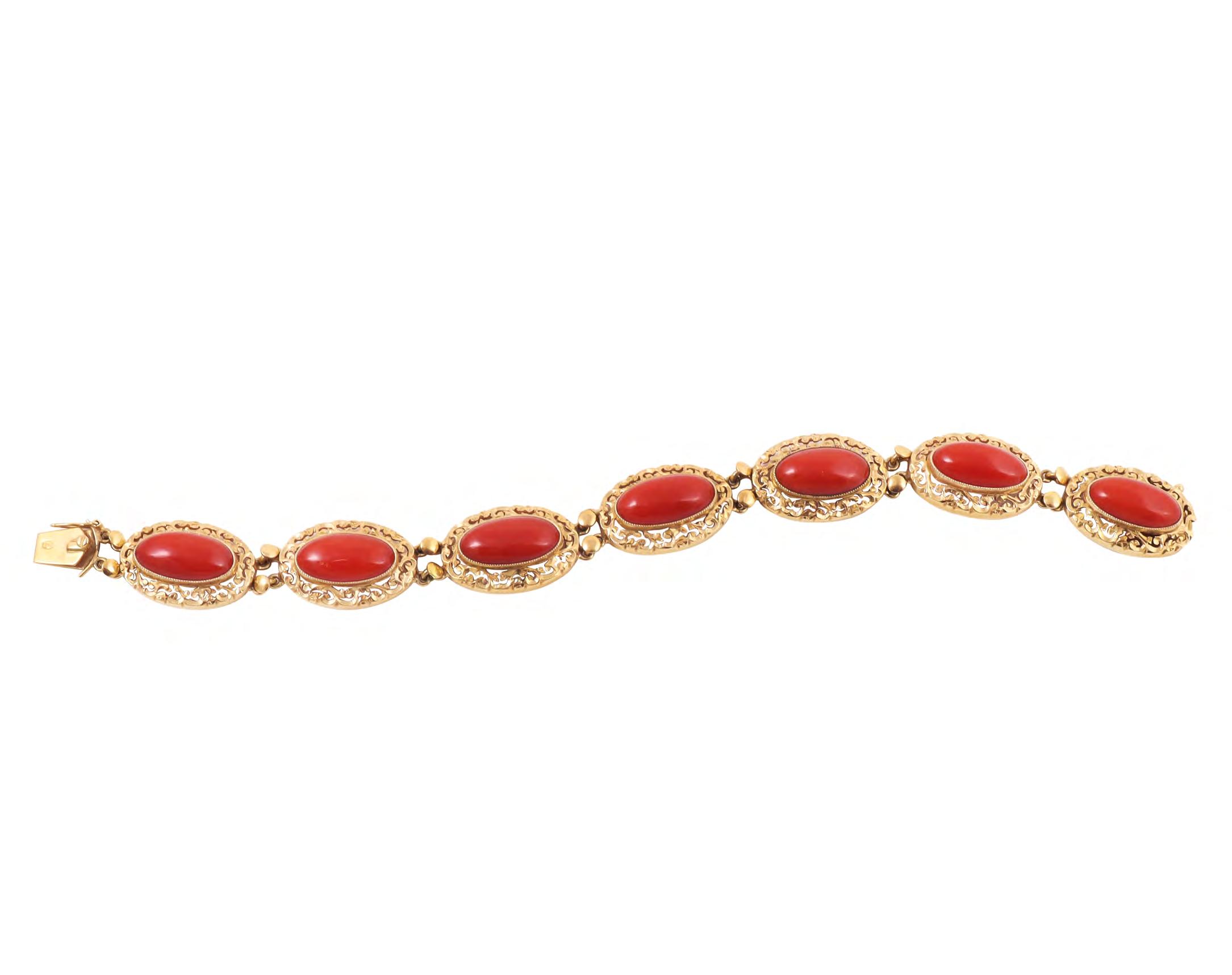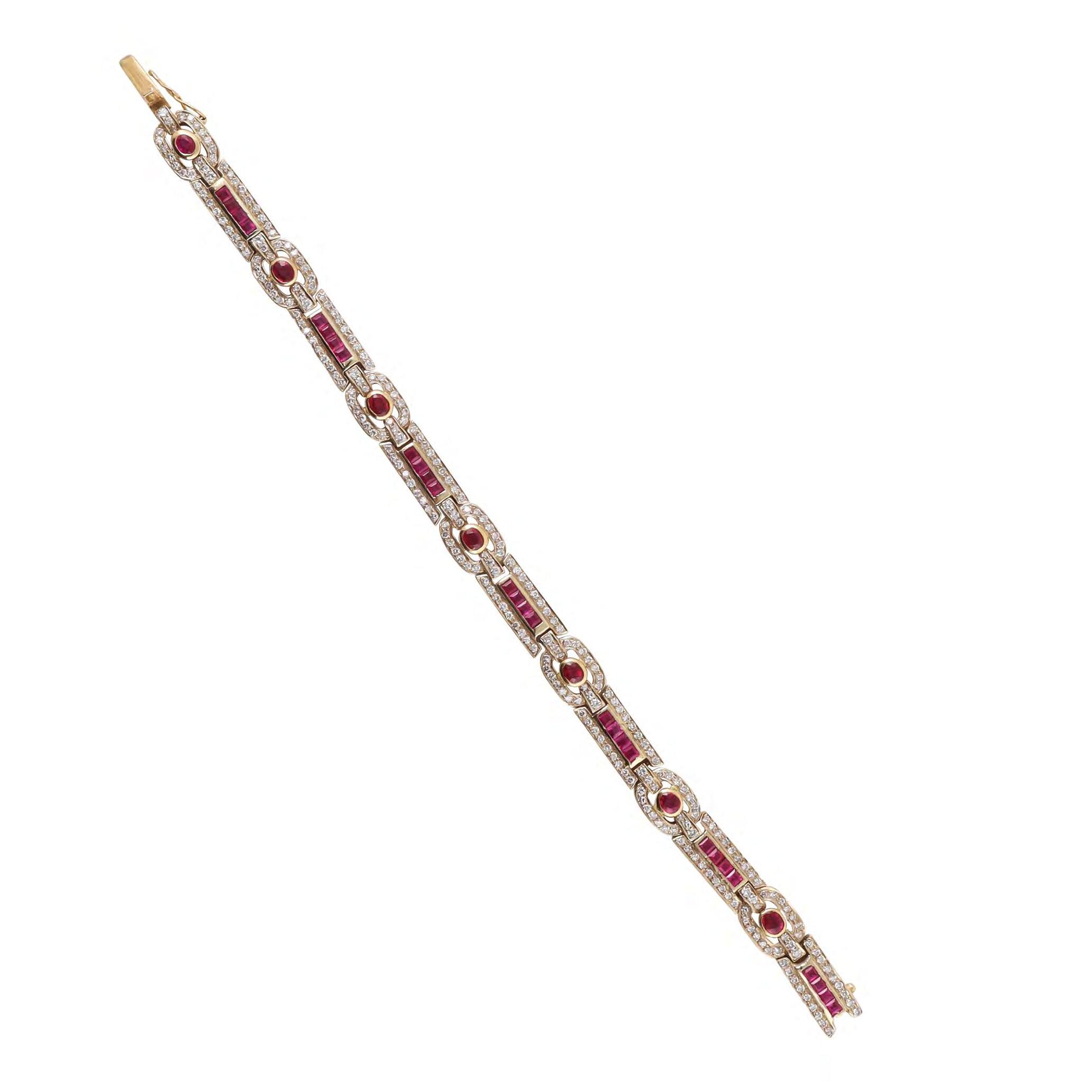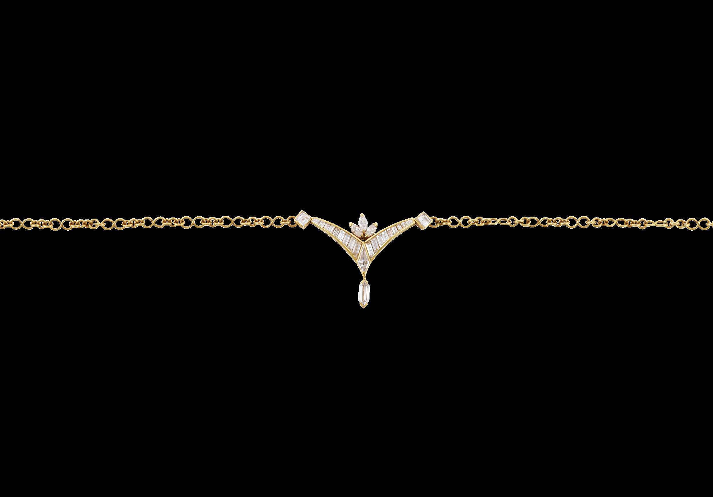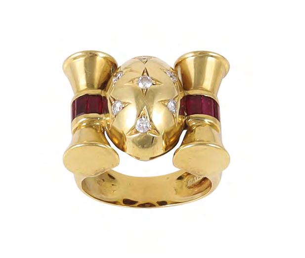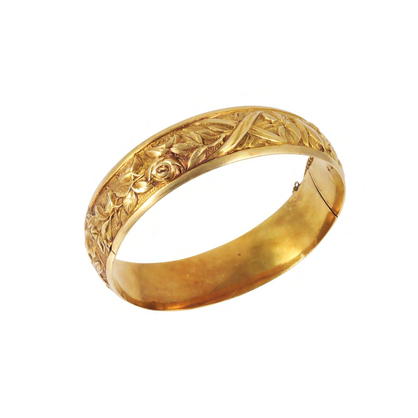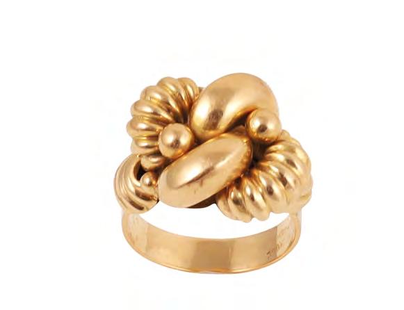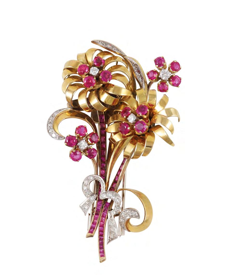 in oro giallo e bianco composto da sei motivi fogliati finemente cesellati con brillanti del peso complessivo di 1,50 ct ca., gr. 65,1.