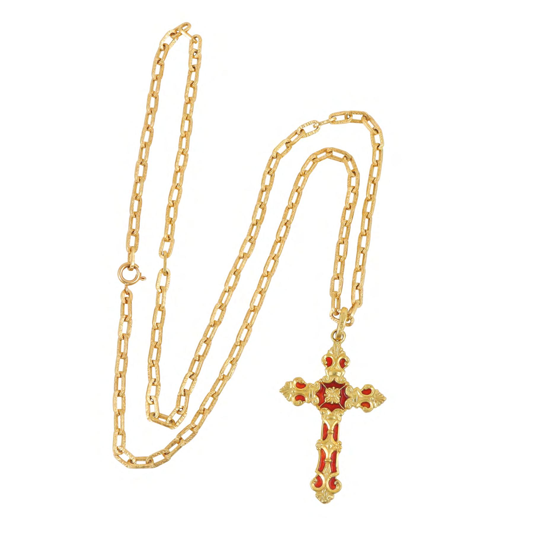 18KT GOLD PENDANT WITH ENAMEL AND CHAIN