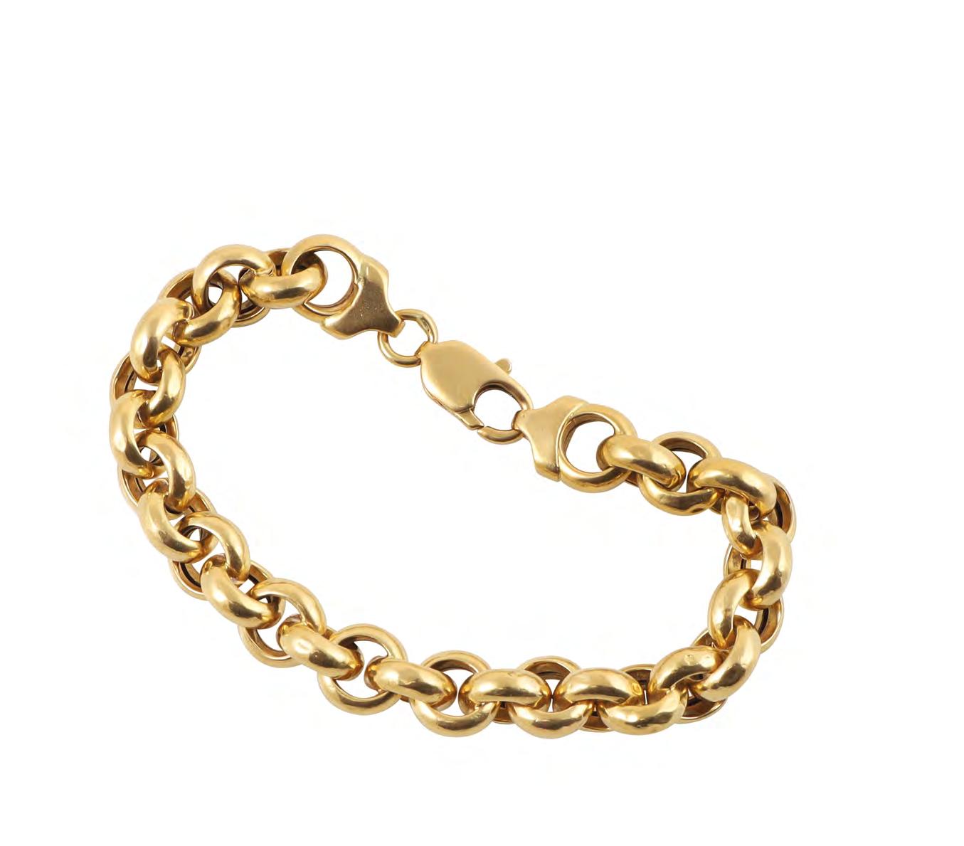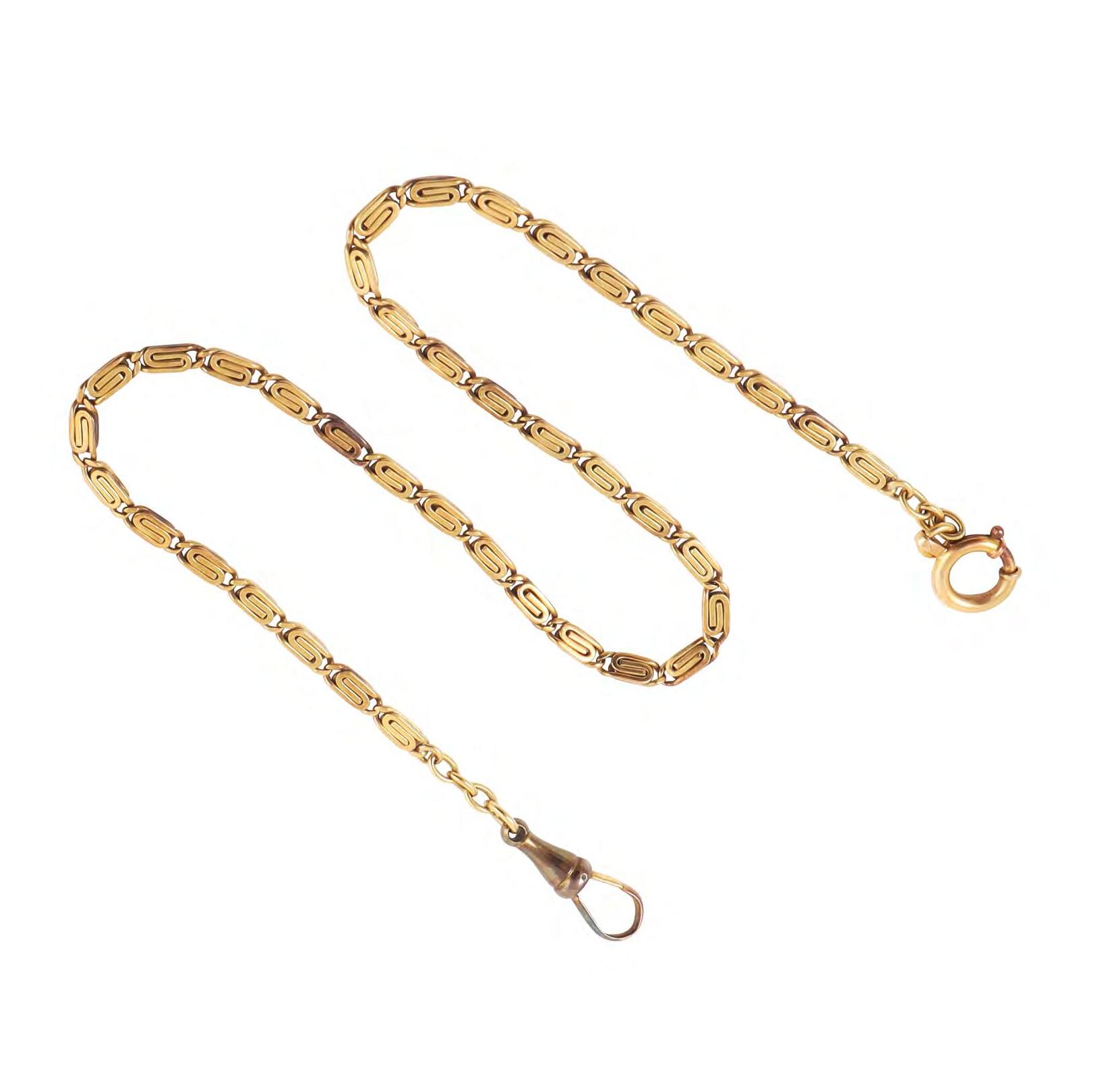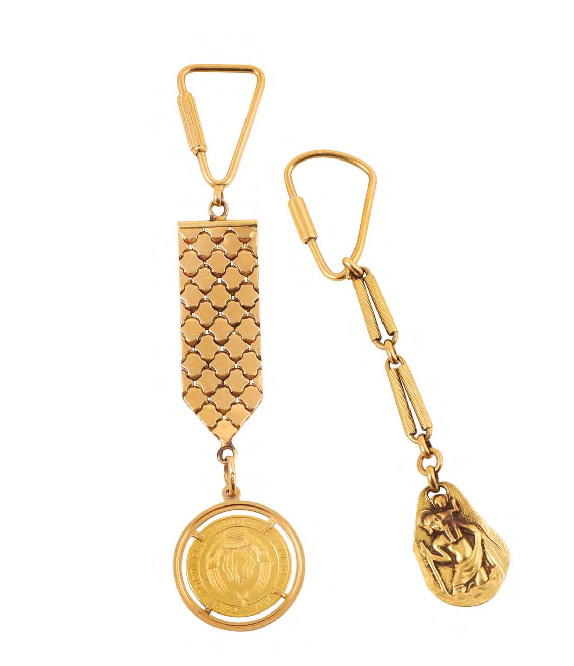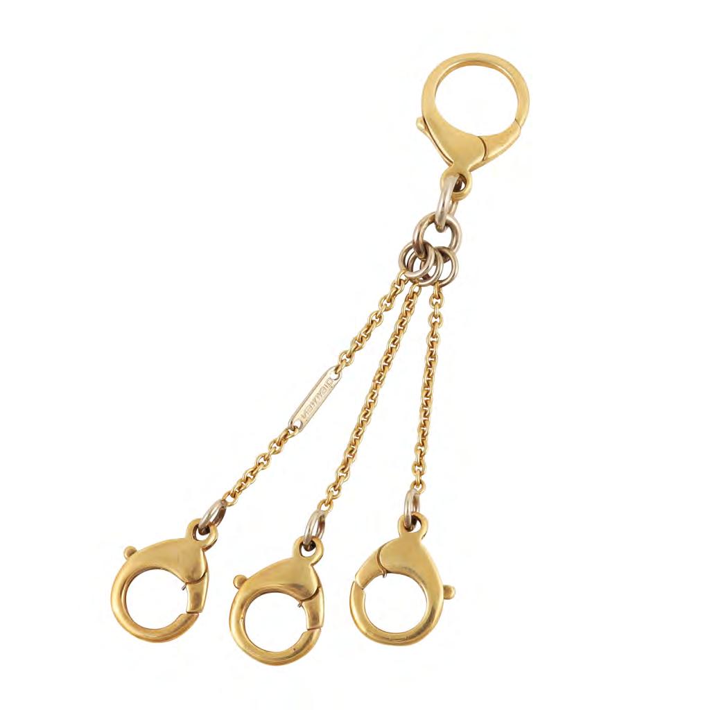 in oro giallo e bianco con catenelle e moschettoni, gr. 20,1.