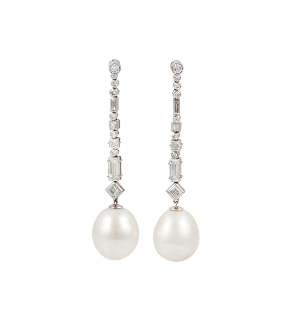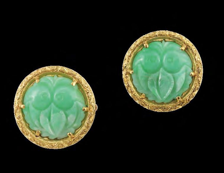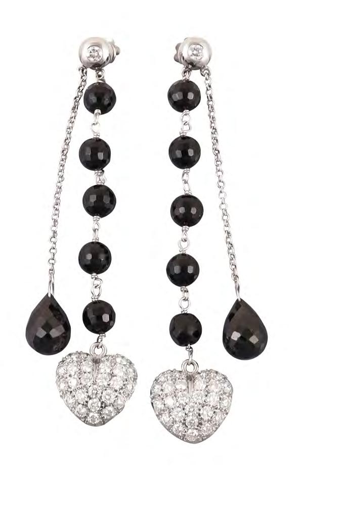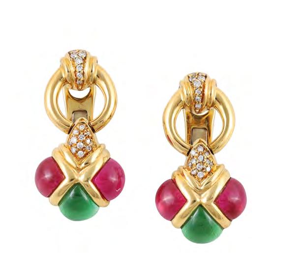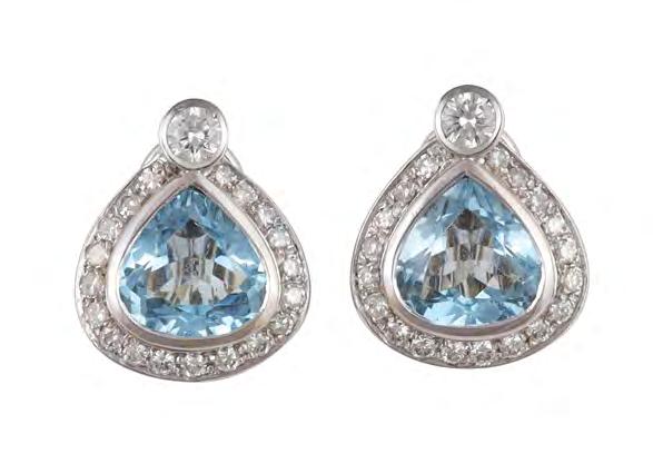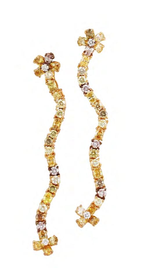 in oro giallo e bianco a motivi fogliati finemente cesellati, ciascuna con al centro un brillante, gr. complessivi 18,2. Dimensioni 3,4 x 3 cm ca. e 3 x 2,8 cm ca.