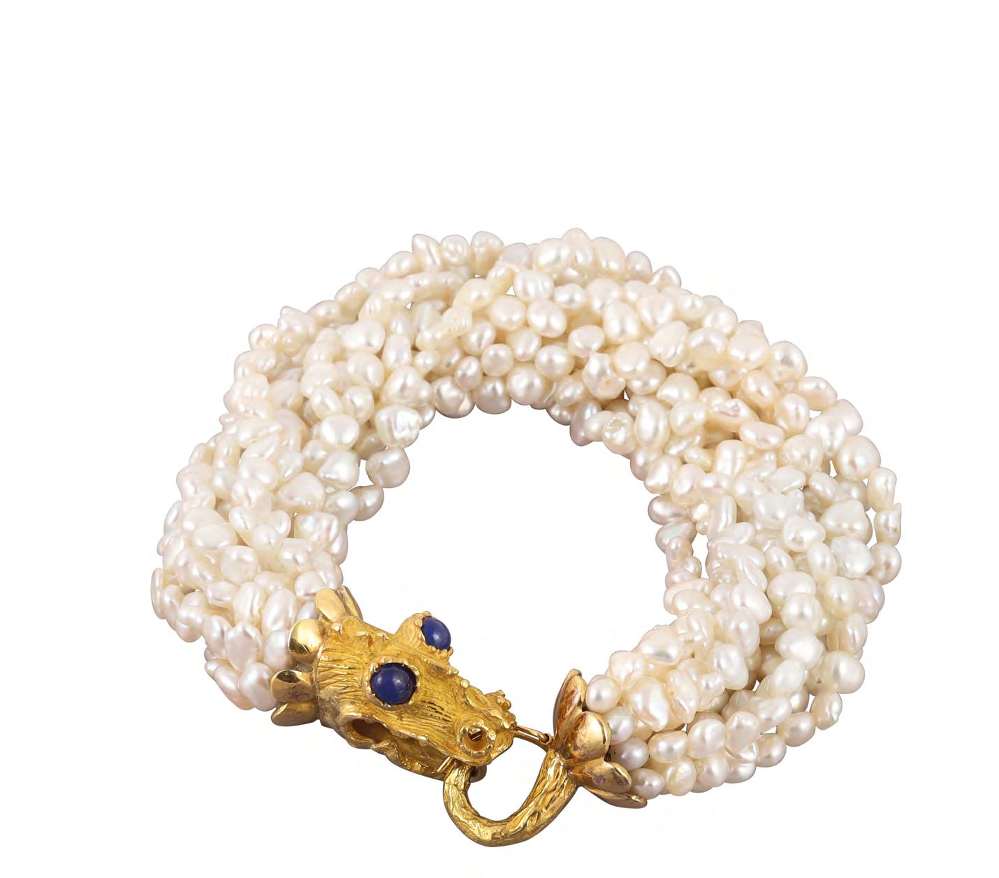 18KT GOLD AND CULTURED PEARLS BRACELET WITH CHARMS