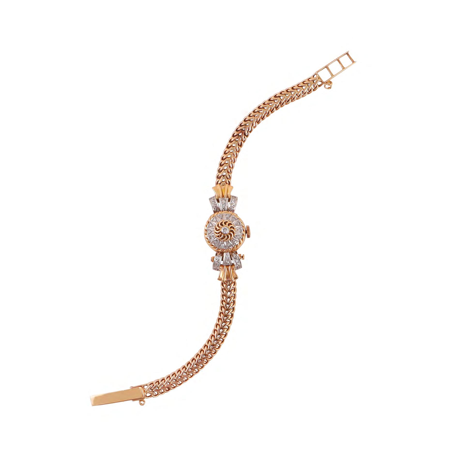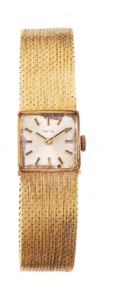 in oro giallo, quadrante argento, indici a bastone. Sfere a bastone. Movimento a carica manuale, gr. lordi 46,3.