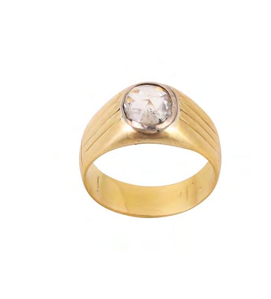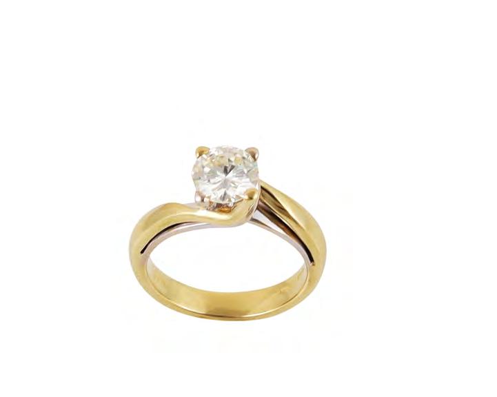 ANELLO in oro giallo e bianco con brillante del peso di 1,38 ct, gr. 8,6.