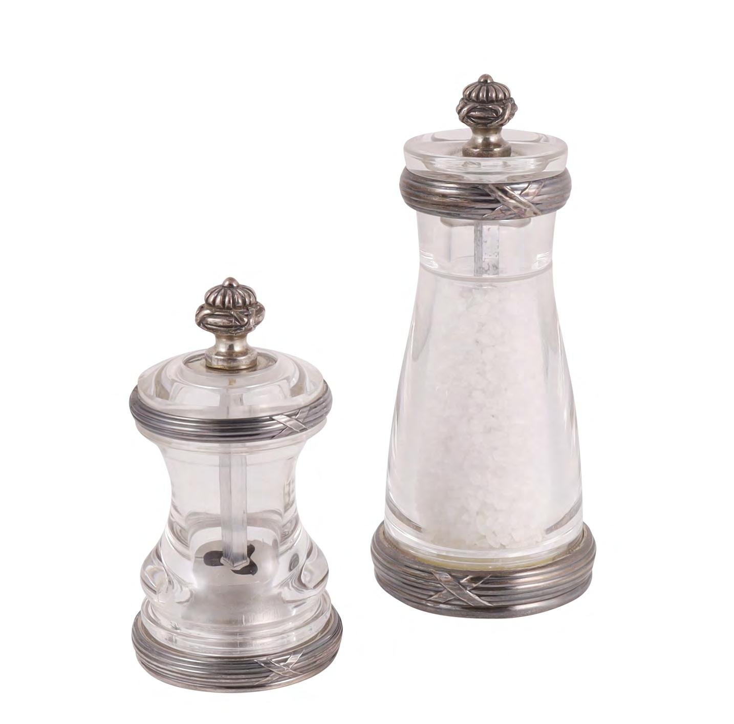 925 SILVER AND PLEXIGLASS SALT AND PEPPER SET, CLEMENTI FOR GIANMARIA BUCCELLATI
