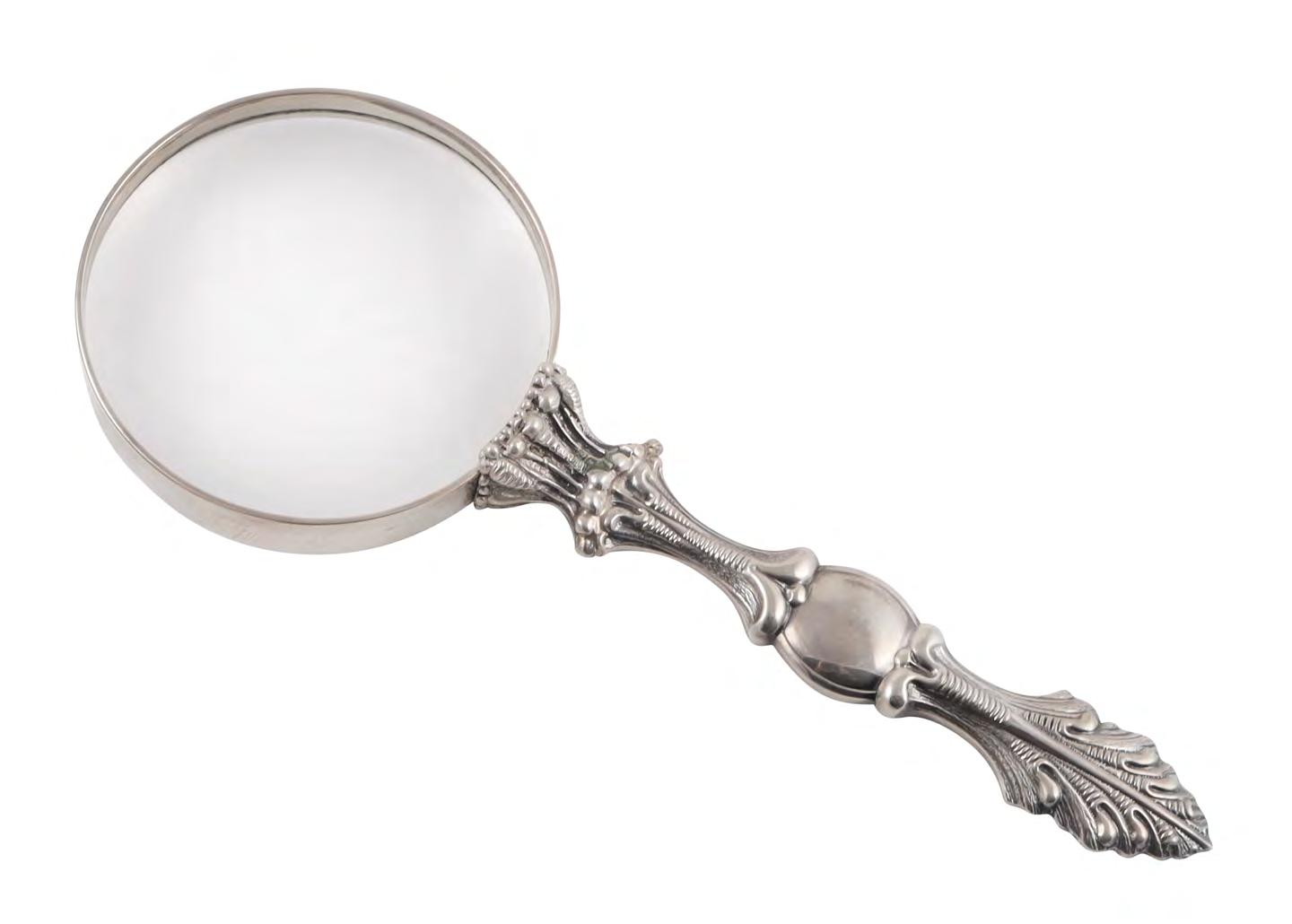 LENTE D’INGRANDIMENTO, GIANMARIA BUCCELLATI in argento 925 con impugnatura sbalzata a motivi vegetali, gr. lordi 190 ca. Corredata da custodia