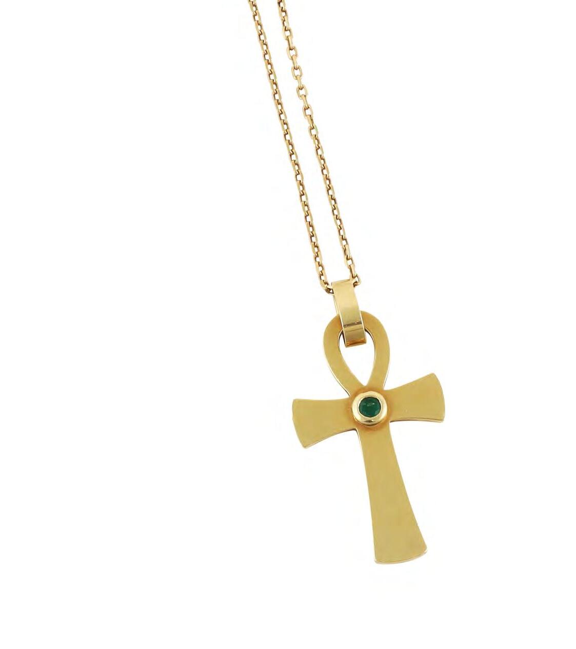 18KT GOLD, DIAMONDS AND GREEN TOURMALINE PENDANT, CUSI. WITH 18KT GOLD CHAIN