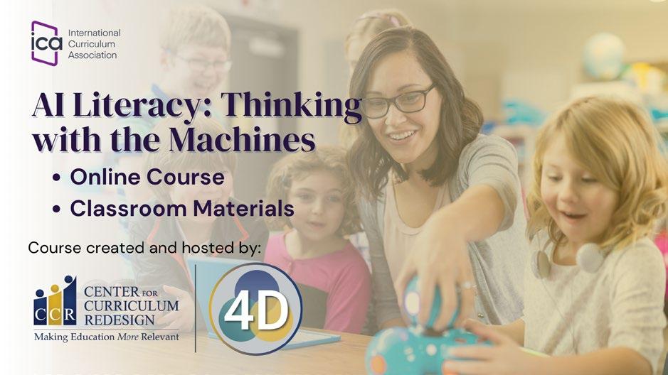 The ICA has partnered with the Center for Curriculum Redesign (CCR) and 4D Education to provide our subscriber schools with a course on AI Literacy for middle years educators.