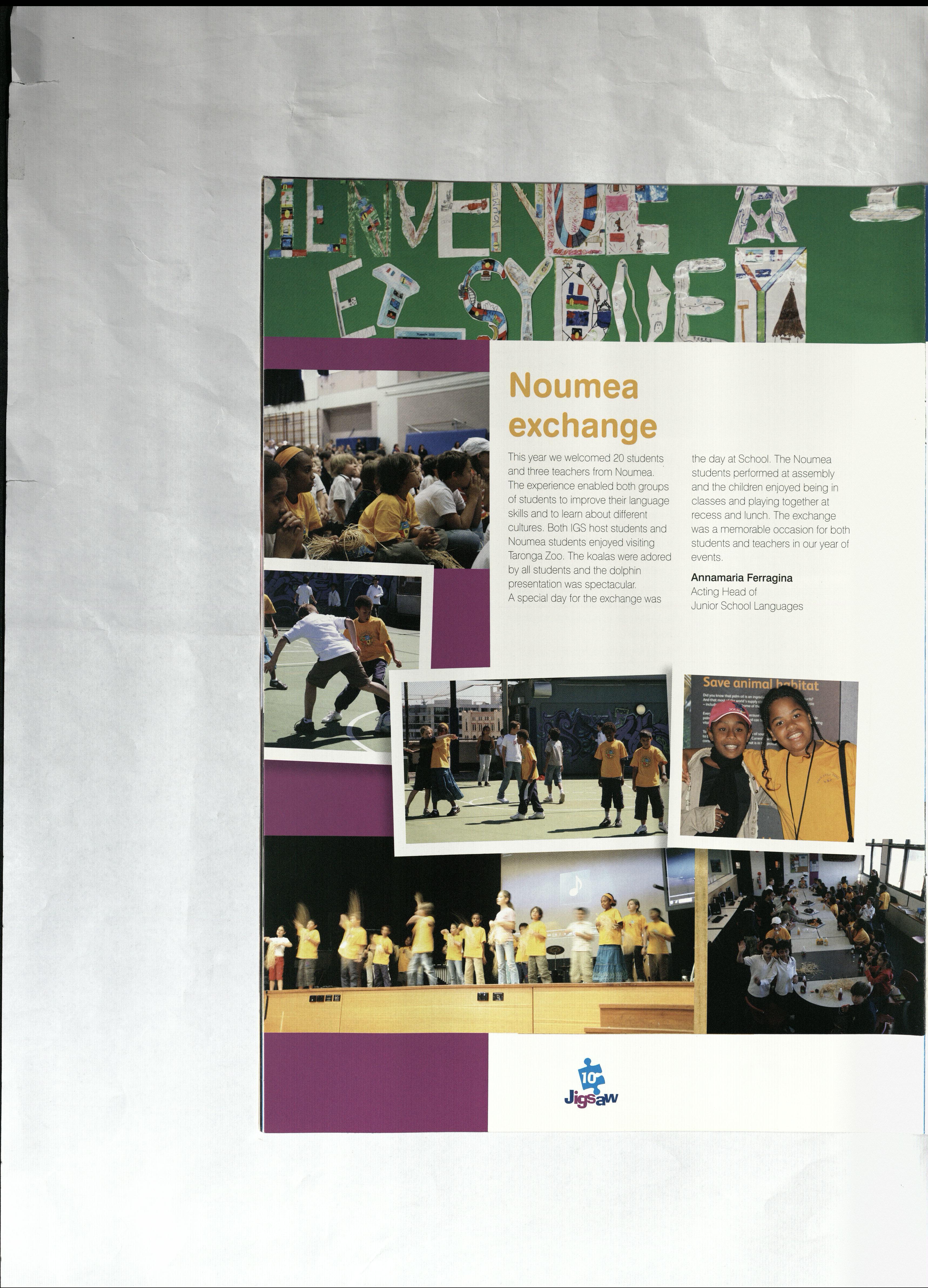 the day at School. The Noumea students performed at assembly and the children enjoyed being in classes and playing together at recess and lunch The exchange was a memorable occasion for both students and teachers in our year of events.