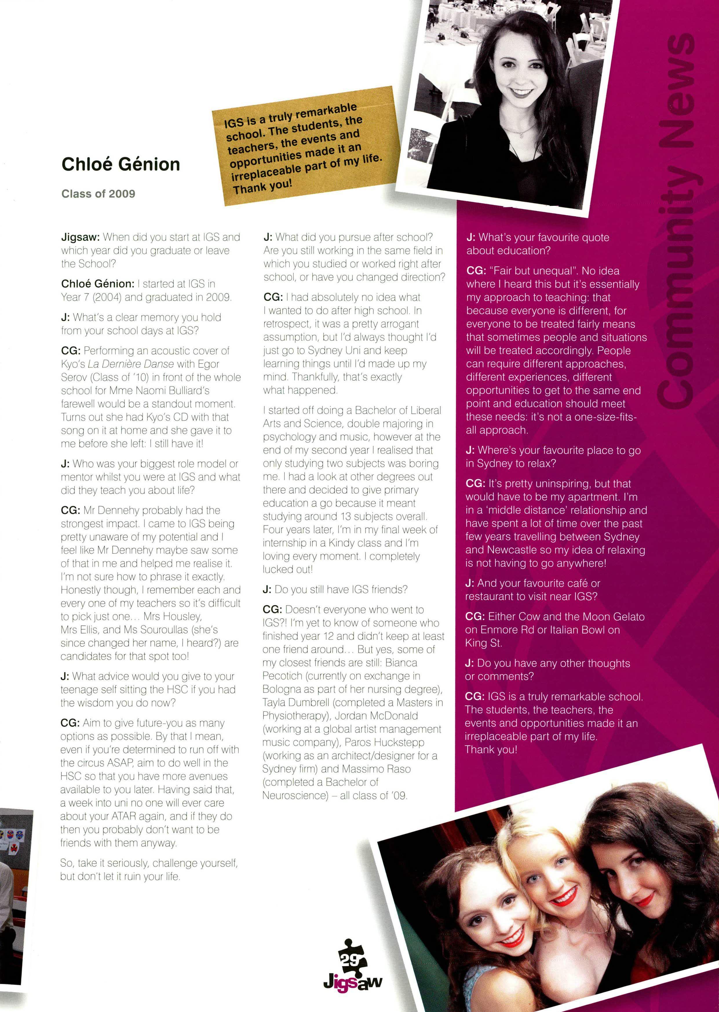 Chloe Génion: I started at IGS in Yes' 7 '200 , 1) and graduated in 2009