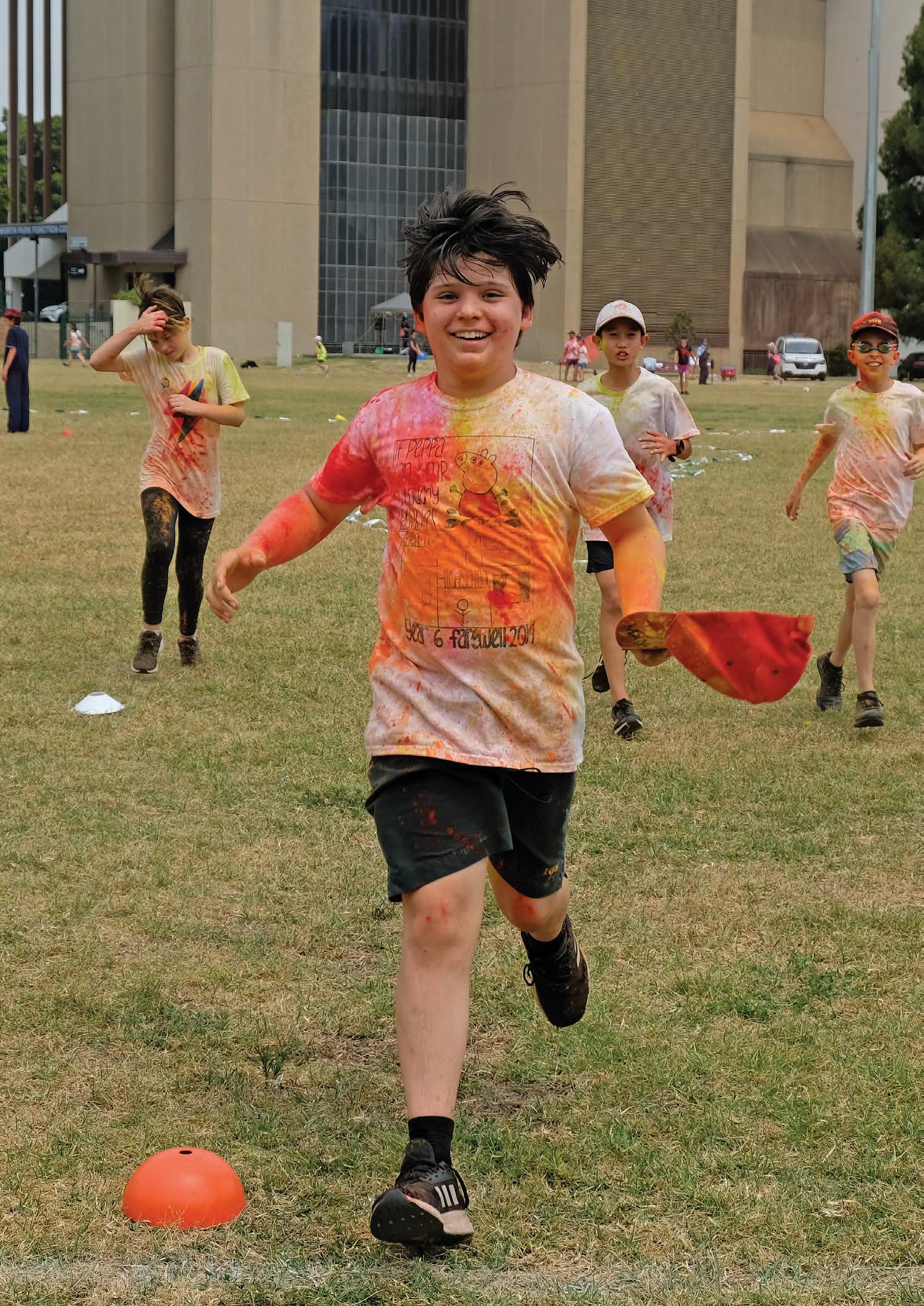 Inside front cover: Dominic Lewis enjoying the IGS Primary School Colour Run