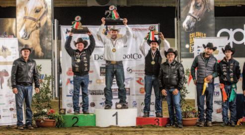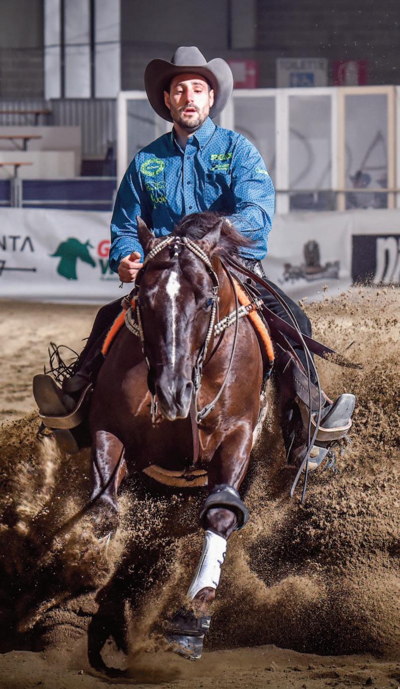 breeding program. On the performance side, two stallions have left an indelible mark in the show pen: Sugar Little Step, who retired in 2024, and Colonels Dancing Gun. The latter, a 10-year-old stallion bred, owned, and nominated by Quarter Dream SRL, boasts an impressive show record, including victories in the NRHA European Futurity and Derby Level 4 Open Championships. He also claimed the 2023 World Reining Senior Professional Individual gold medal, all under the saddle of NRHA Professional Nico Sicuro. In 2024, Colonels Dancing Gun and Sicuro secured the NRHA Open World