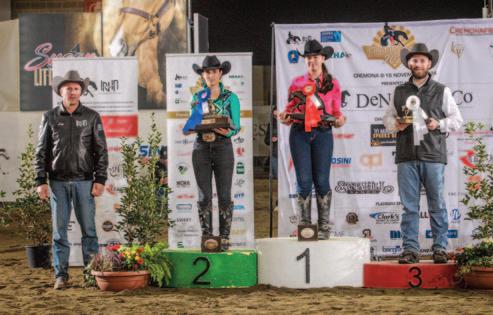 Smart x Playboys Girl), a 2010 American Quarter Horse stallion owned by Luca Terzi. The pair scored a 290.5 composite (Rein Work: 71.5, Herd Work: 73, Steer Stopping: 71, Fence Work: 75) to claim the title. “Winning the Four Crown title is always special,” he shared. “Winning aboard Cats Got Freckles makes this even more special; he’s such an amazing horse to ride and to show. Of course, I’m very proud of the other young horses I rode too. They definitely have the qualities to become great show horses.”