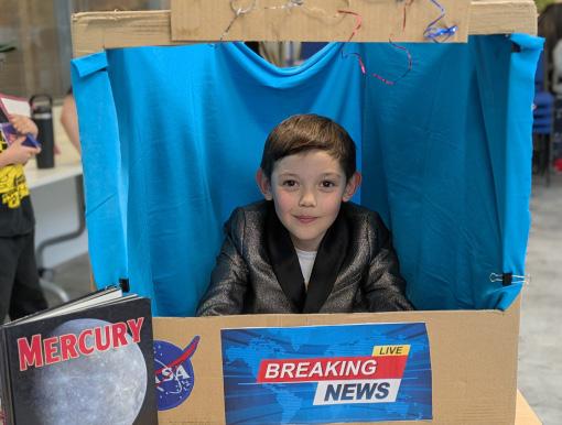 Beyond their impressive grasp of space concepts, the Grade 3 students showcased their ingenuity as young changemakers by creatively reusing recyclable materials to construct their models for the ‘Space Expo’. Embracing the principles of their earlier sustainability unit, these budding scientists transformed everyday ‘waste’ into captivating representations of planets, Earth’s layers, and even technological marvels of space exploration.
