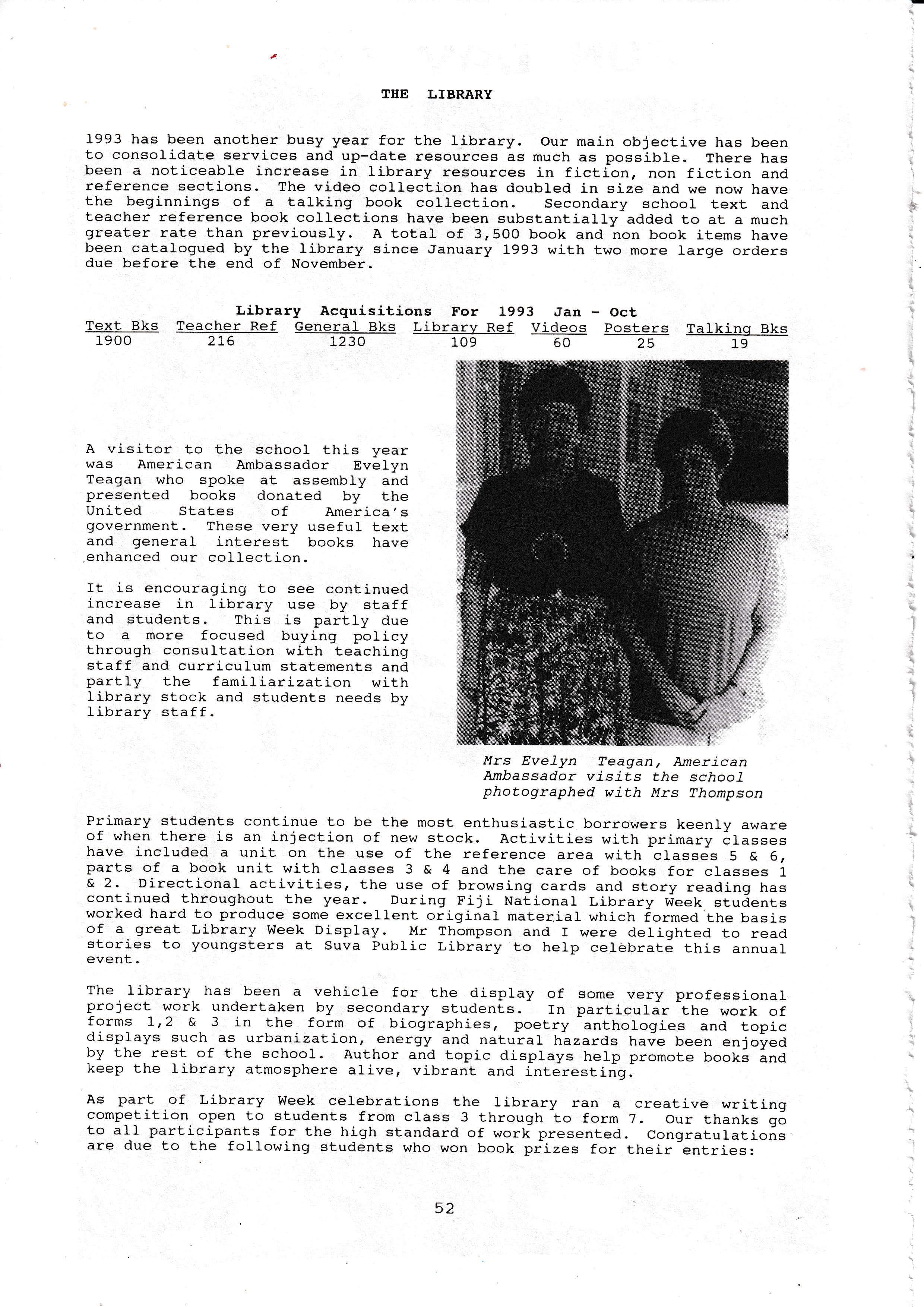 Several members of both the Primary and the Secondary staff were sponsored by the school- during the past year to undertake professional development activities in a wide range of areas in New Zealand and Australia. Staff also participated in workshops conducted by the Curriculum Development Unit of the Fili Minist'ry of Education and benefitted from visiting specialists in Primary.