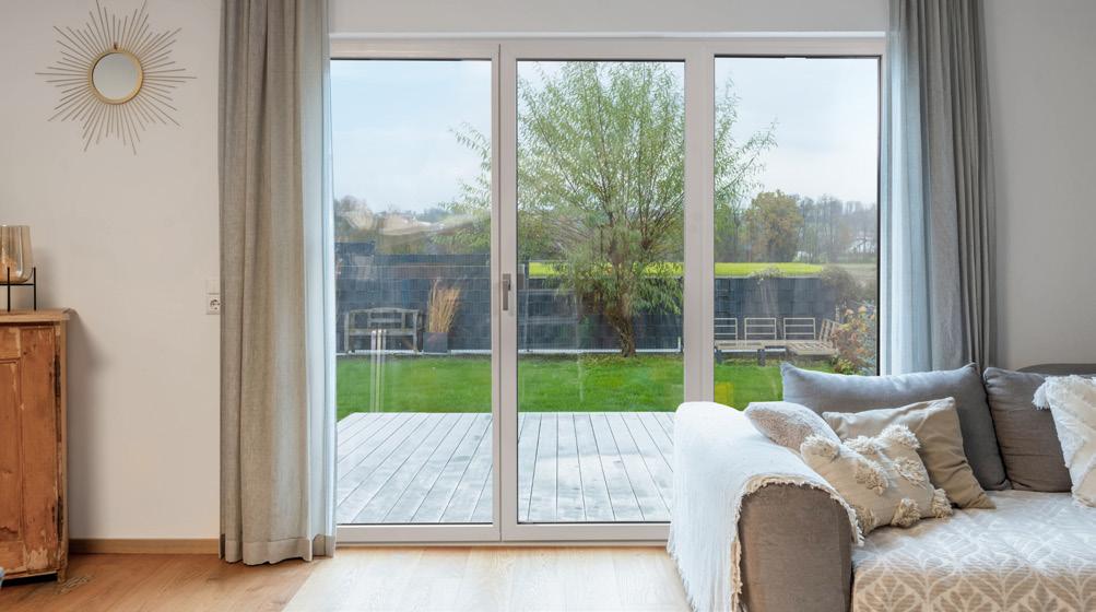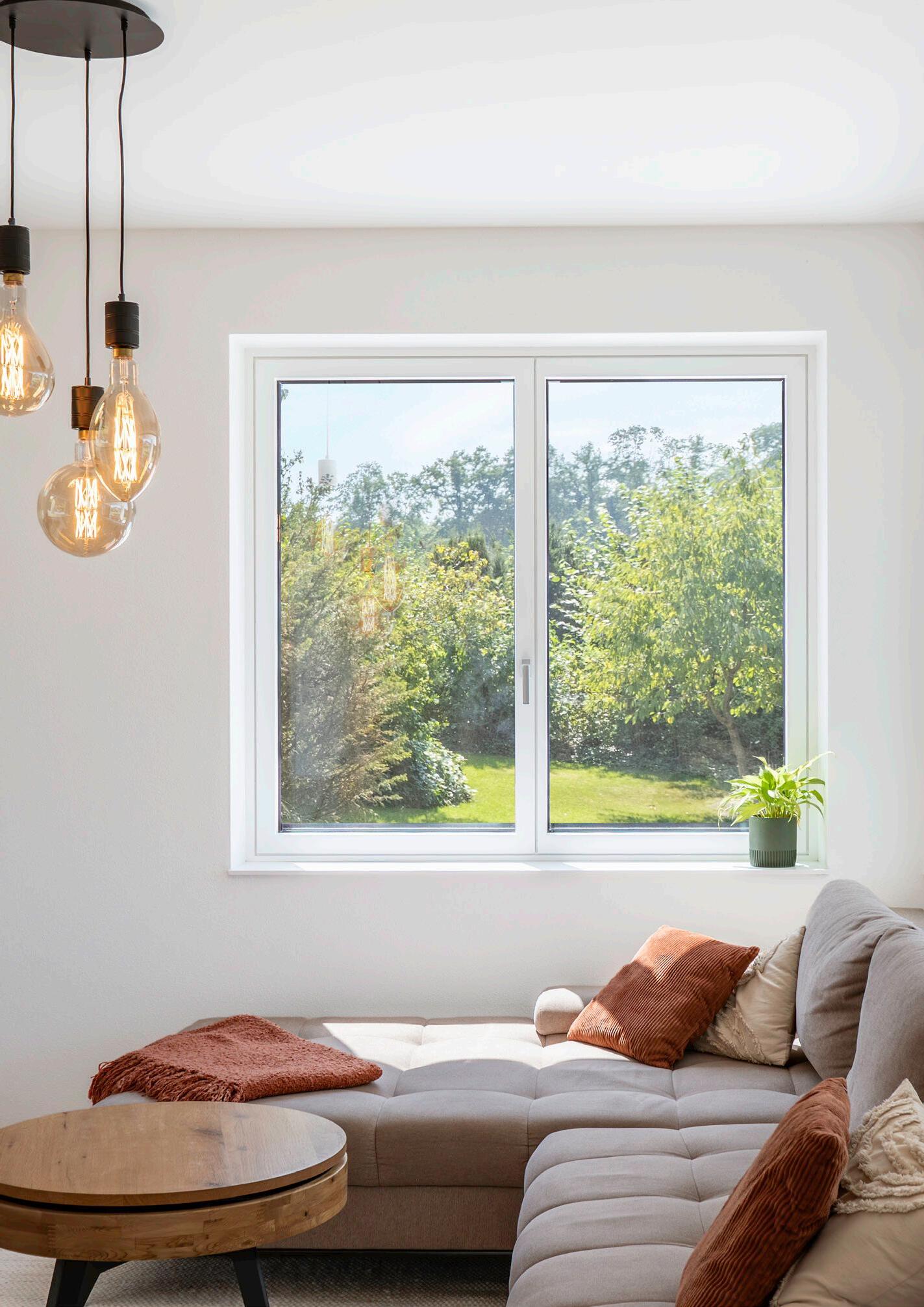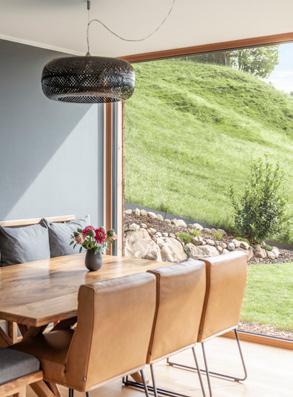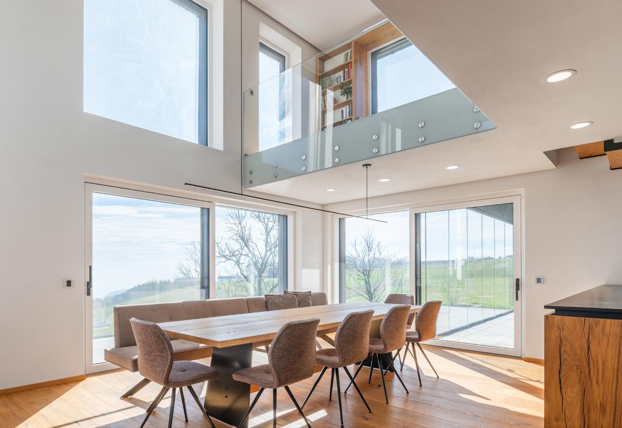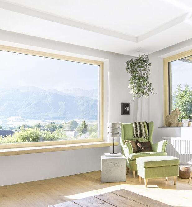 Durchdachte Architektur und hochwertige Bauelemente sorgen für behagliches Wohnen. Besonders die Holz-Aluminium-Fenster von Internorm mit Dreifachverglasung tragen entscheidend zur Wärmedämmung und Wohnqualität bei. Große Glasflächen lassen viel Tageslicht herein und schaffen ein offenes, naturnahes Wohngefühl.
