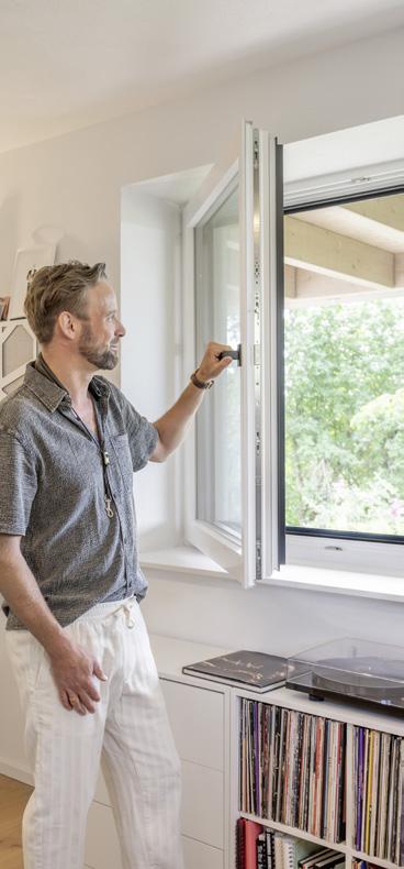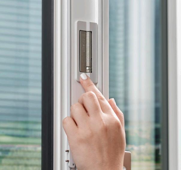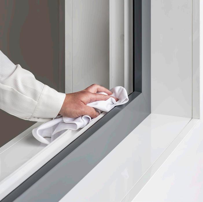 Auch bei der Fensterreinigung bieten diese Klappen deutliche Vorteile. Nur wenige Teile am Flügel stehen vor, die Rahmenteile entfallen fast zur Gänze. 2 Zwischen den Teilen befindet sich lediglich eine glatte und pflegeleichte Kunststoffoberfläche.