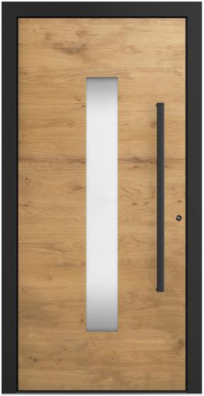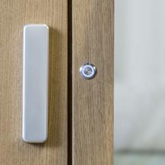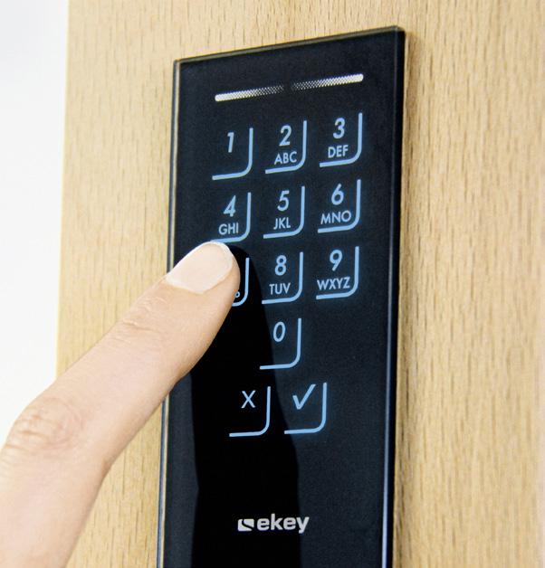 Optional zur Öffnung mit dem Finger kann auf die traditionelle Variante der Code-Tastatur zurückgegriffen werden. Das „ ekey home integra keypad “ wird direkt in den Türflügel eingebaut, lediglich das ultraflache Dekorelement ist sichtbar.