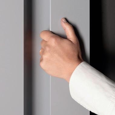 Klopanie generuje vibrácie a aktivuje modul v ráme, ktorý nie je viditeľný. Nemusíte klopať na dvere na konkrétnom mieste. Vďaka technológii I-tec Open nedochádza k neúmyselnému otvoreniu dverí napríklad pri nárazovom vetre, pretože iba klopanie vytvára potrebné vibrácie.