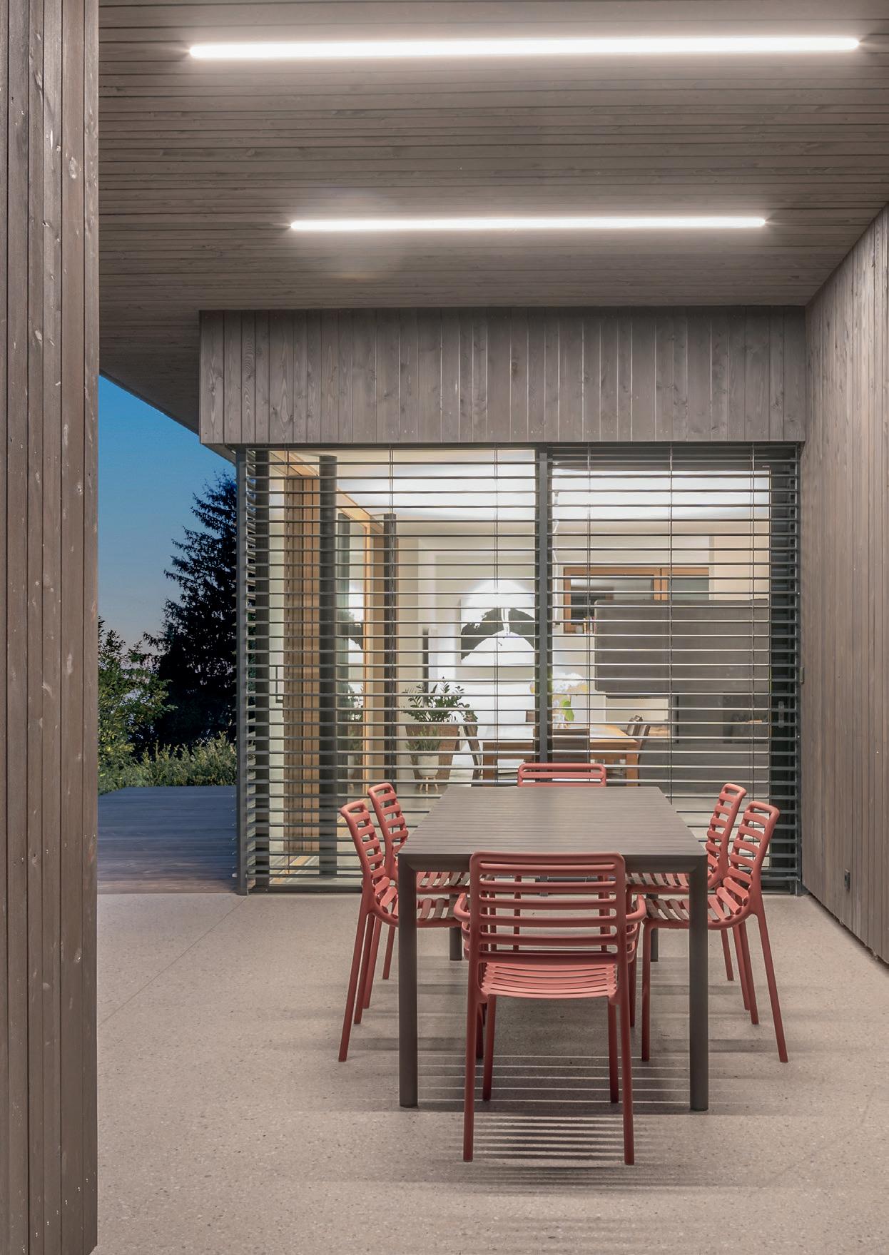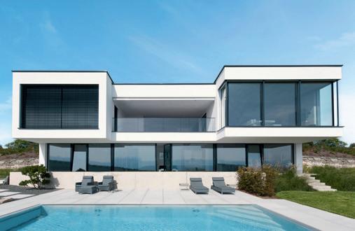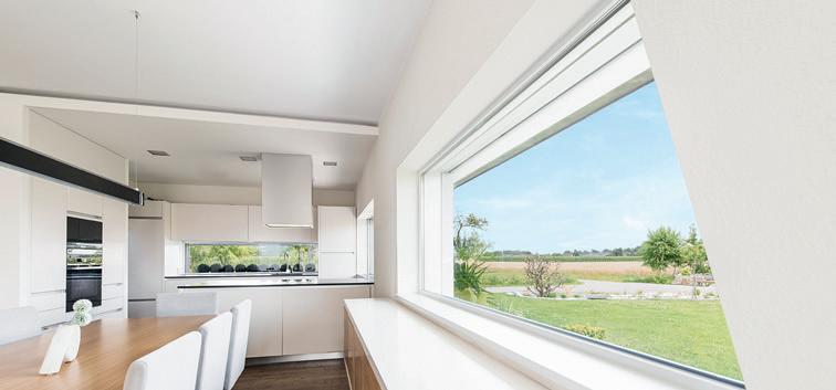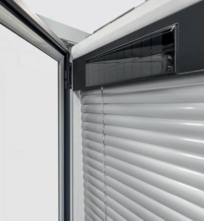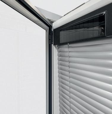 Raffstore-vonkajšia žalúzia: optimálne ovládanie a nastavenie svetla a tepla vďaka nastaviteľným lamelám, na želanie s reguláciou denného svetla RETROLux; kombinovateľné s ochranou proti hmyzu.