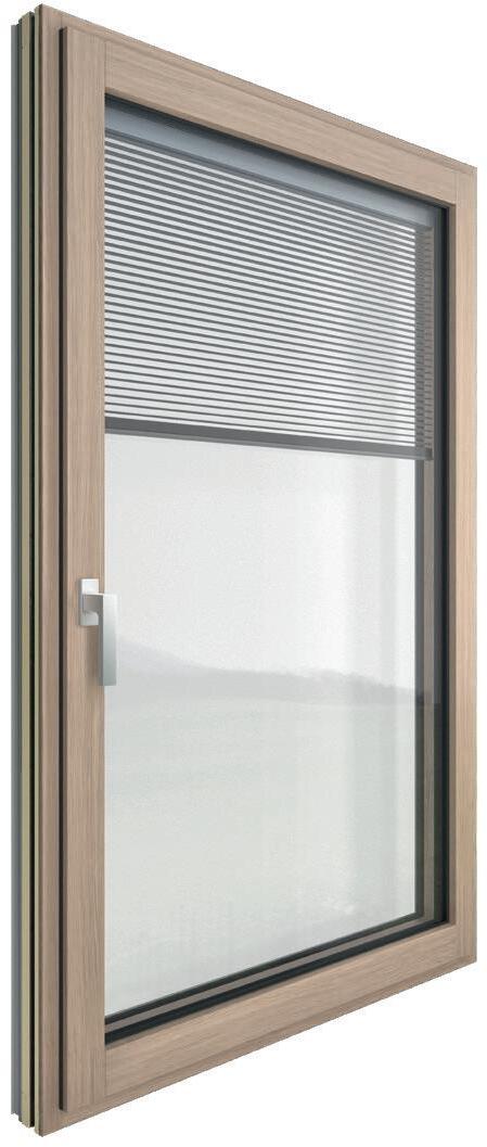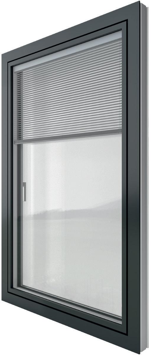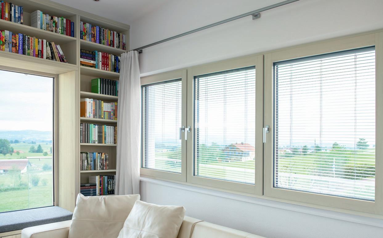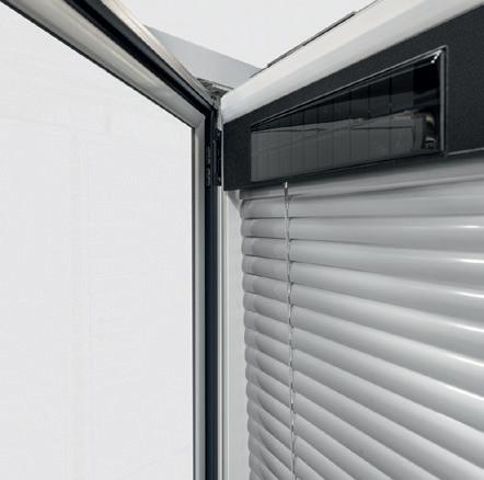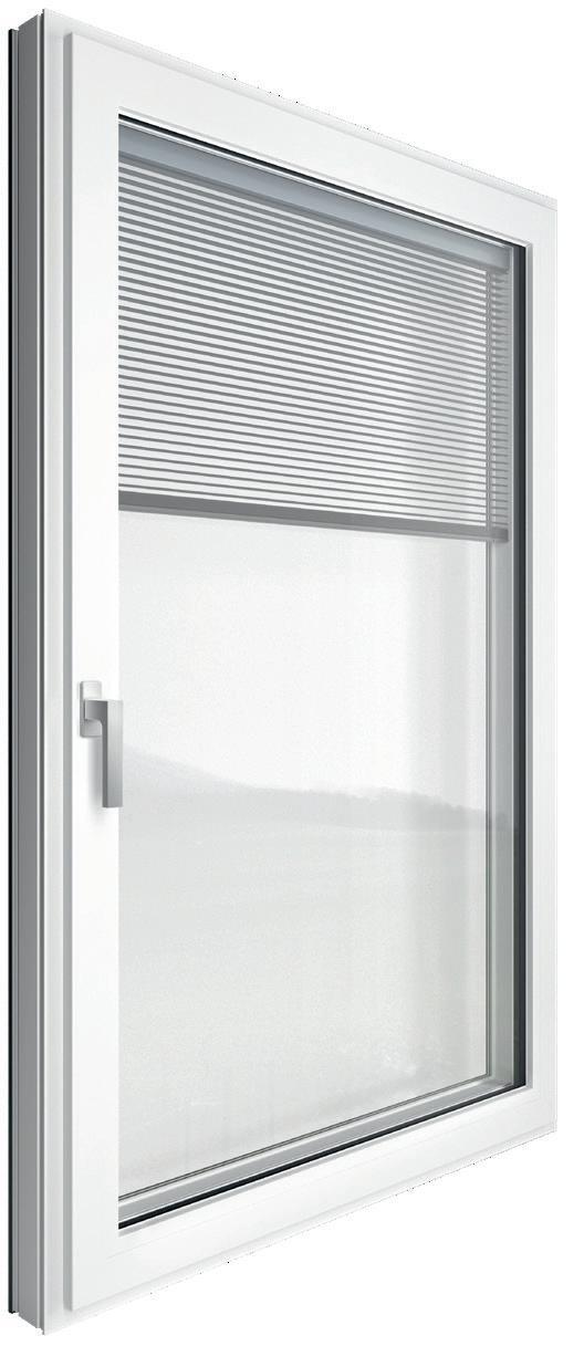 Zdvojené okno: integrovaná slnečná a pohľadová ochrana medzi tabuľami skla – podľa výberu žalúzia, plisovaná roletka alebo dvojito plisovaná roletka Duette ®, na želanie s energeticky sebestačnou tieniacou technikou (I-tec Shading).