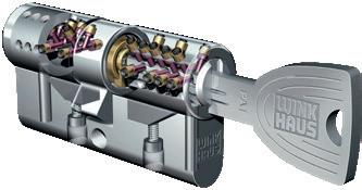 Štandardná cylindrická vložka je chránená proti vyháknutiu a vyvŕtaniu oceľovými kolíkmi. Je obojstranne uzamykateľná, to znamená, že aj keď kľúč je zasunutý na jednej strane dverí, je možné ho odomknúť alebo zamknúť z druhej strany.