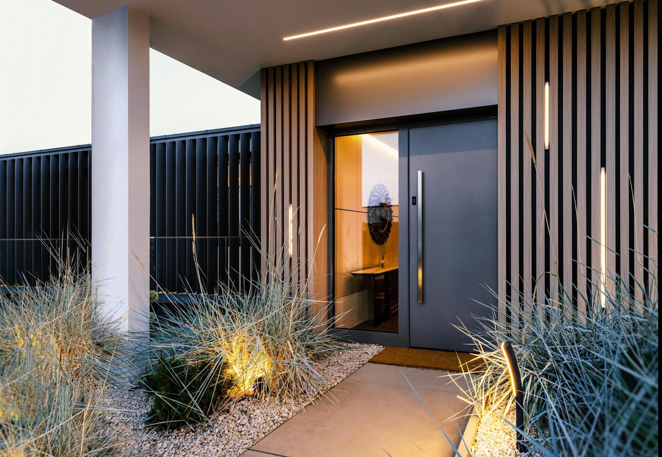 Die Aluminium-Hauseingangstüren sind stabil, pfl egeleicht und variabel.