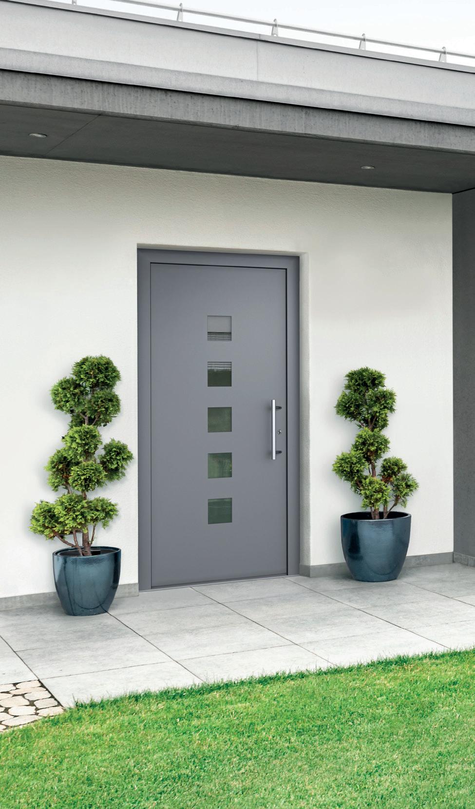 Die Aluminium-Hauseingangstüren sind vielfältig, pfl egeleicht und sicher.