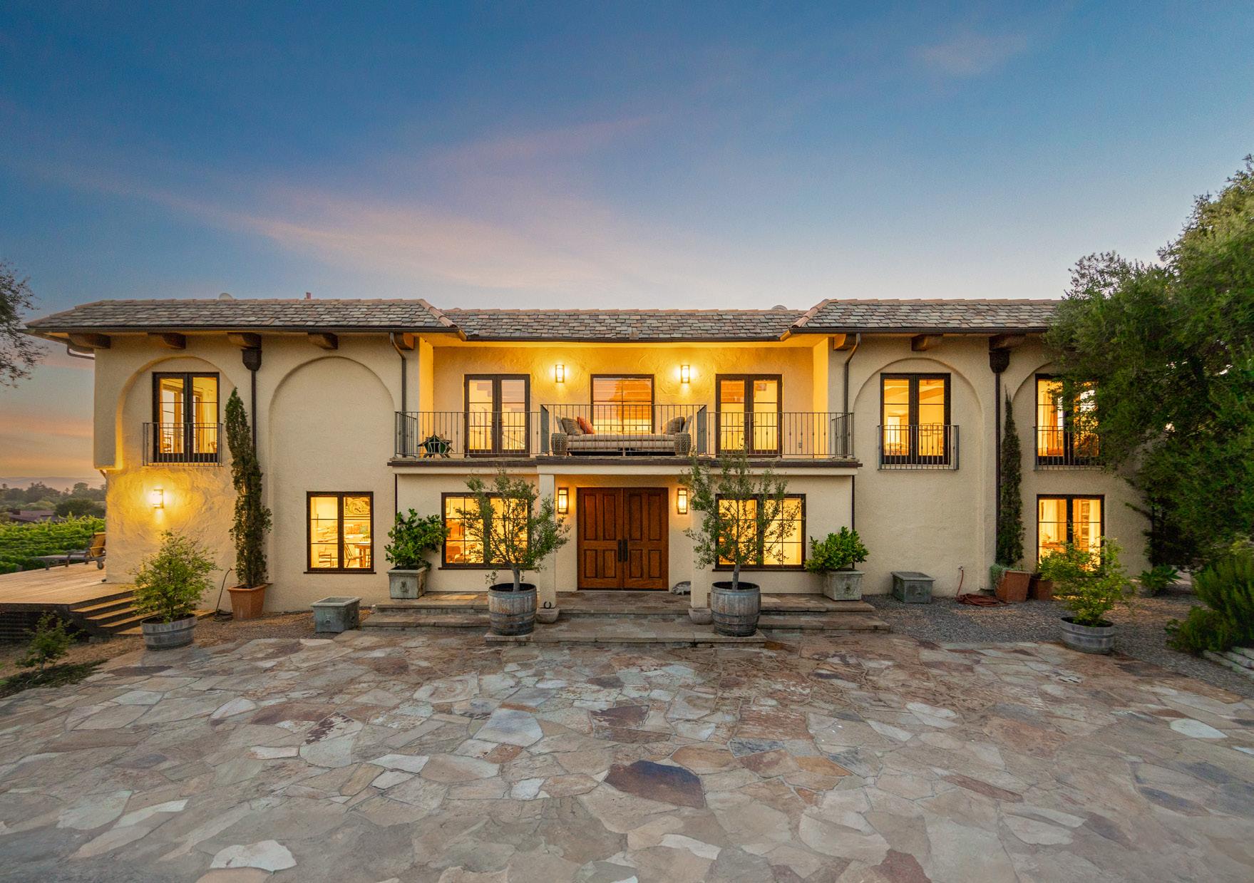 Commanding Hilltop Estate in Santa Ynez Wine Country. Elevated on nearly 20± acres of spectacular, unspoiled land, this estate stands as a force of nature— private, powerful, and impossible to overlook. With uncompromising 360° views, a working vineyard, and a deeply luxurious residence, this is not simply a home—it’s a stronghold of elegance and self-sufficiency. The 6,236± sq. ft. main residence was fully reimagined, merging scale, sophistication, and structure. Massive wood-beamed ceilings crown a grand living room anchored by a formidable stone fireplace and framed by wrought iron chandeliers. Walls of French doors and picture windows pull the landscape inward—flooding every space with light and purpose. A chef’s kitchen built to perform features a granite-clad island with seating, commercial-grade appliances, and a walk-in pantry. Formal and casual living areas flow effortlessly to the outdoors—designed for both high-impact entertaining and quiet seclusion. Six bedrooms, six full baths & two half baths deliver space, scale, and autonomy. Dual primary suites offer private wings with deep soaking tubs, walk-in showers, gym or office space, and breathtaking views to the surrounding landscape. Heated floors and UV-protected doors and windows. Every inch has been considered.