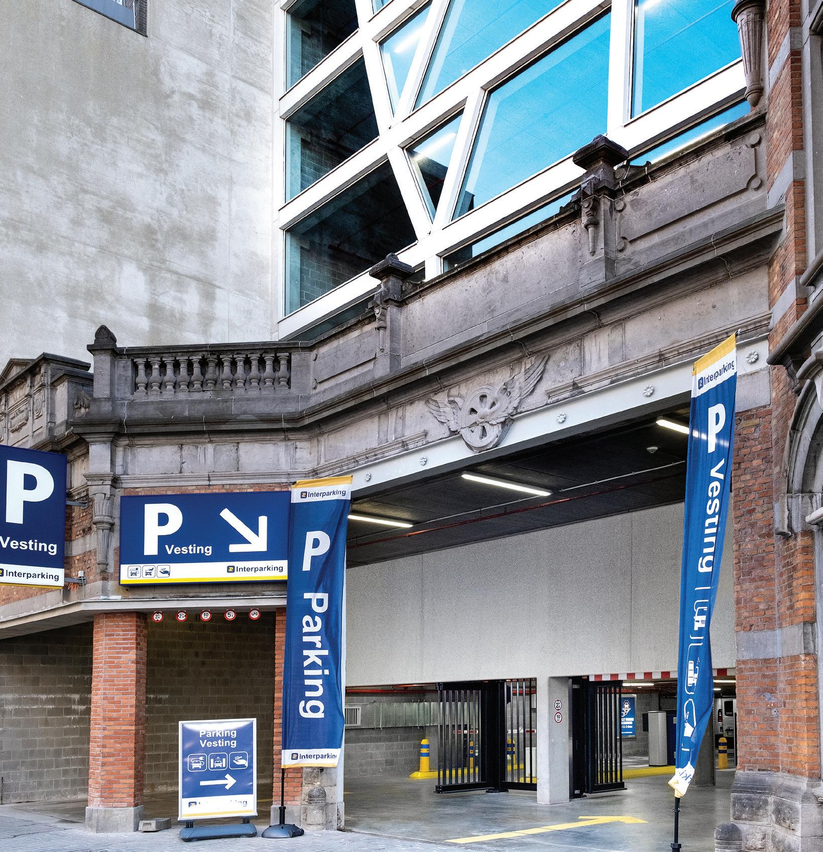 Other car parks that have been built include the Vesting, a two-storey underground and eight-storey above-ground car park in the centre of Antwerp. A particular highlight is the historic façade of the old garage which has been preserved and integrated into
