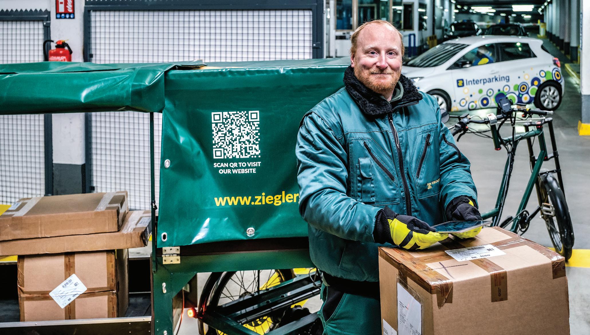 In September 2021, Interparking launched, "Cargobikes" in partnership with Ziegler Logistics. This is a green initiative to contribute to smarter and more sustainable urban logistics. This "lastmile" (final stage of the order process) delivery solution sees large parcels delivered with very low to almost zero CO2 emissions: an electric truck "shuttle" connects the main hub to a microhub located in the Interparking Albertine car park in Brussels; from there, the cargo bikes