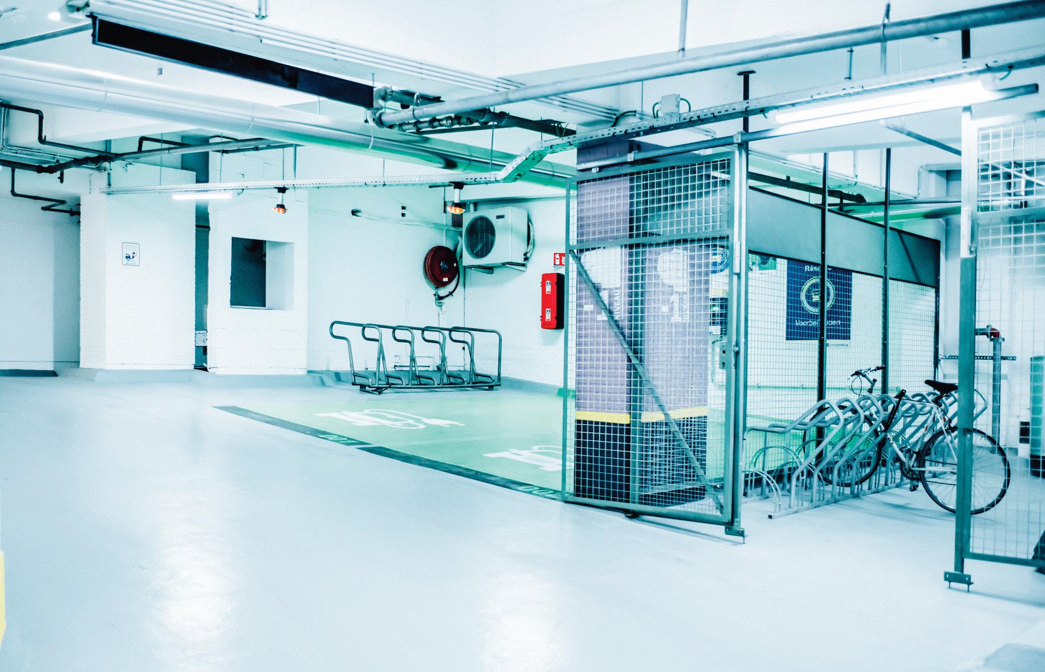 Loi facilities in Brussels features a complete floor dedicated to cyclists and cargo bike owners offering charging stations for electric bicycles as well as a maintenance workshop.